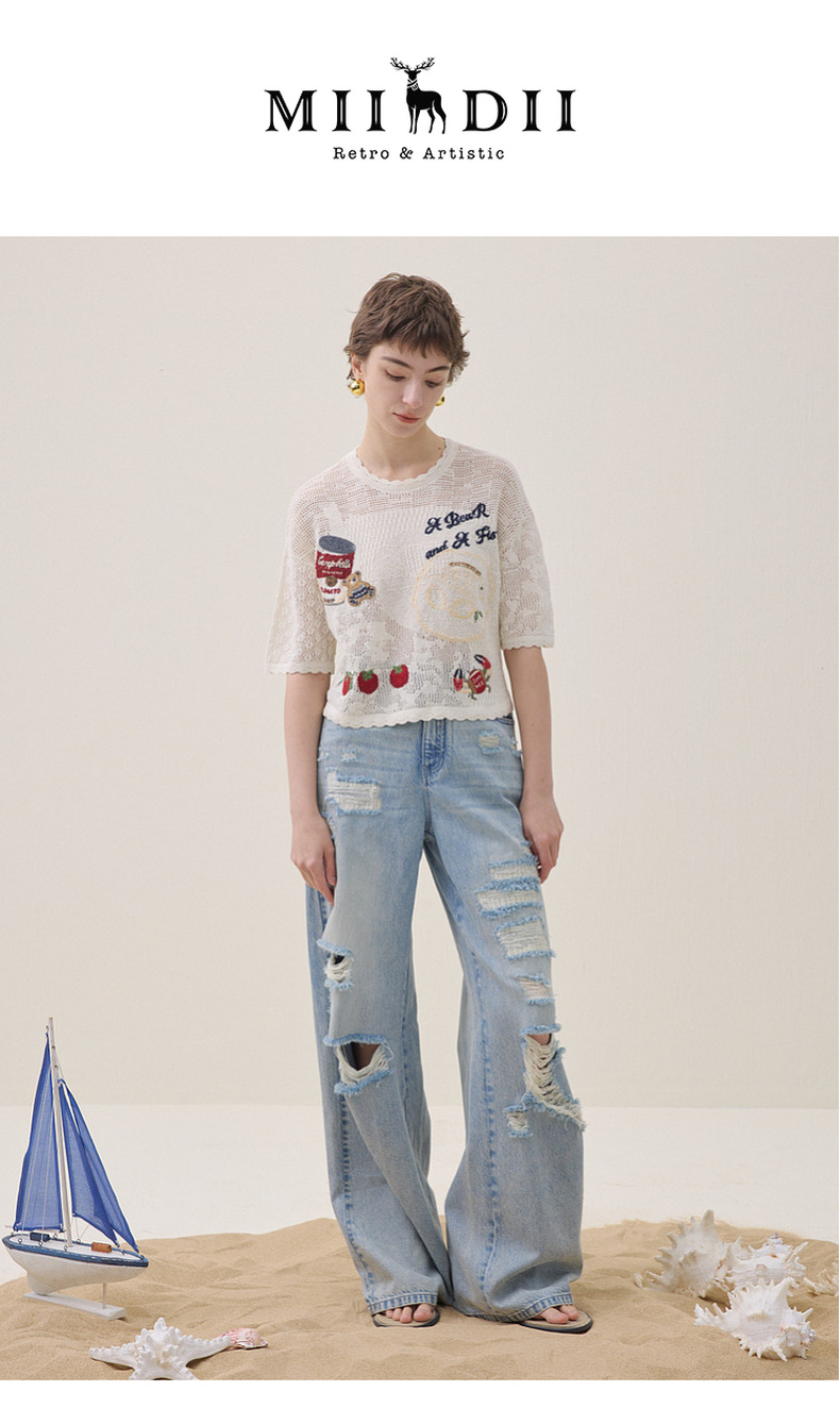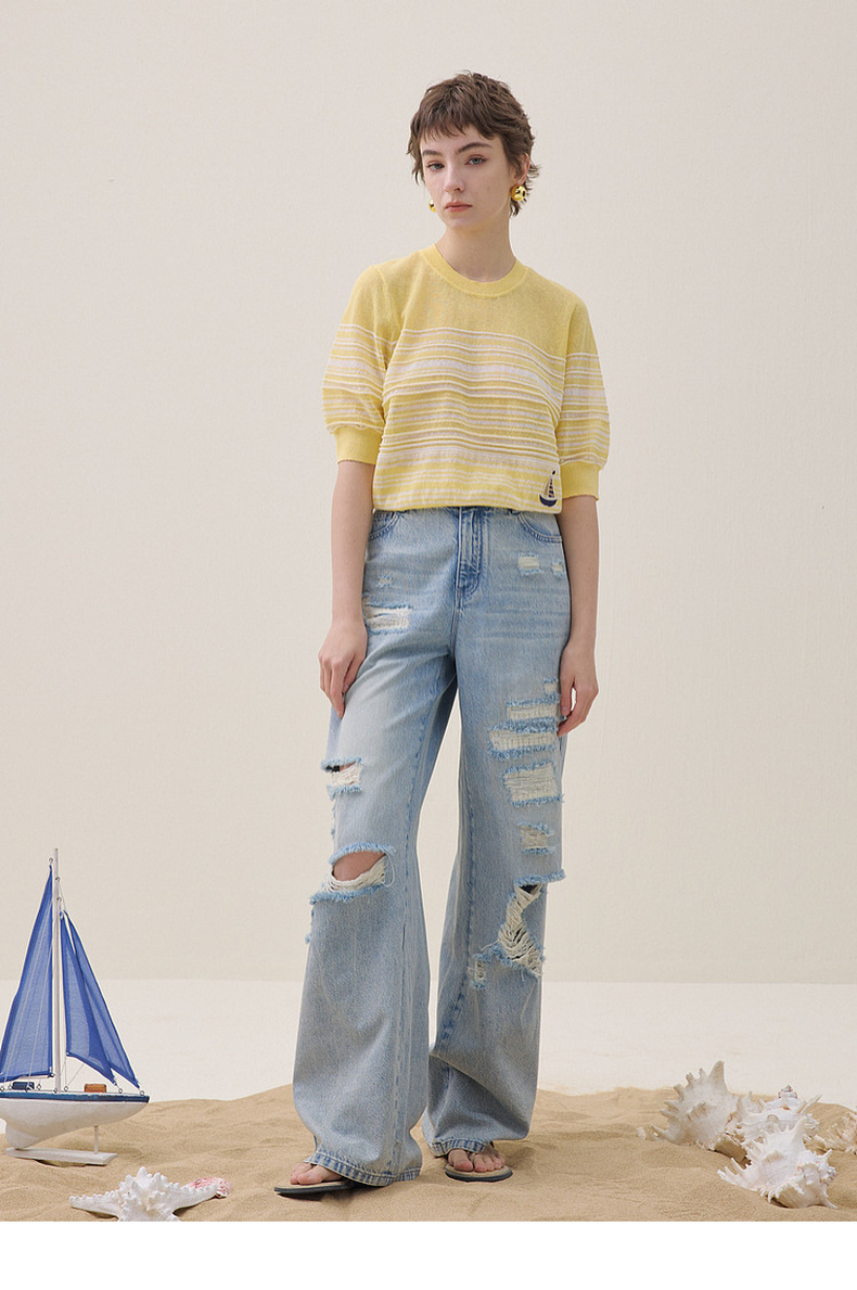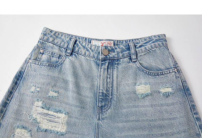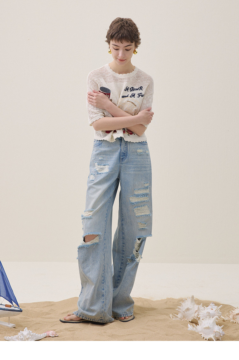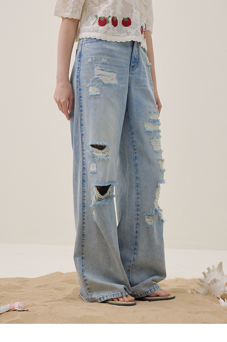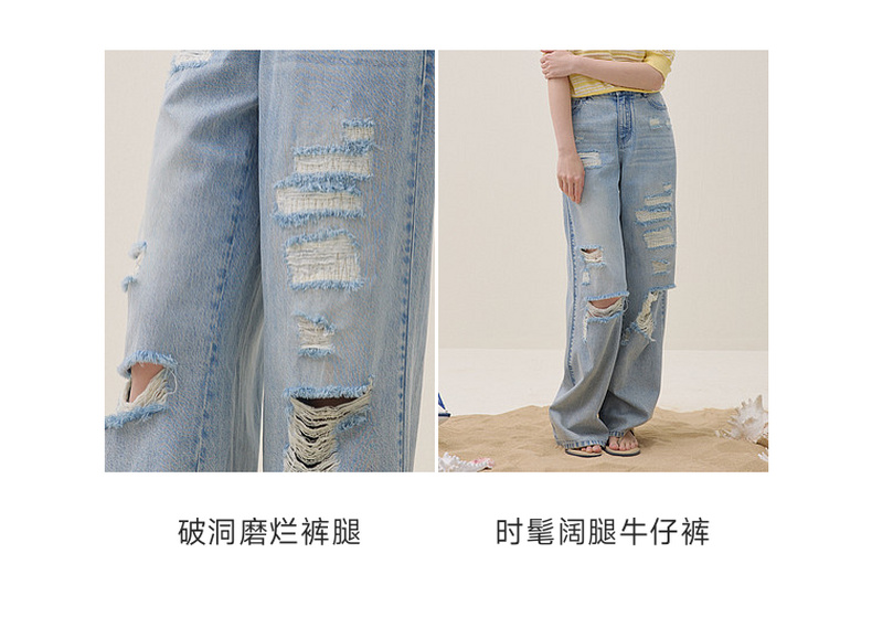 谜底阔腿牛仔裤长裤2026夏季新品天丝棉烫钻破洞浅蓝女262MJ0453