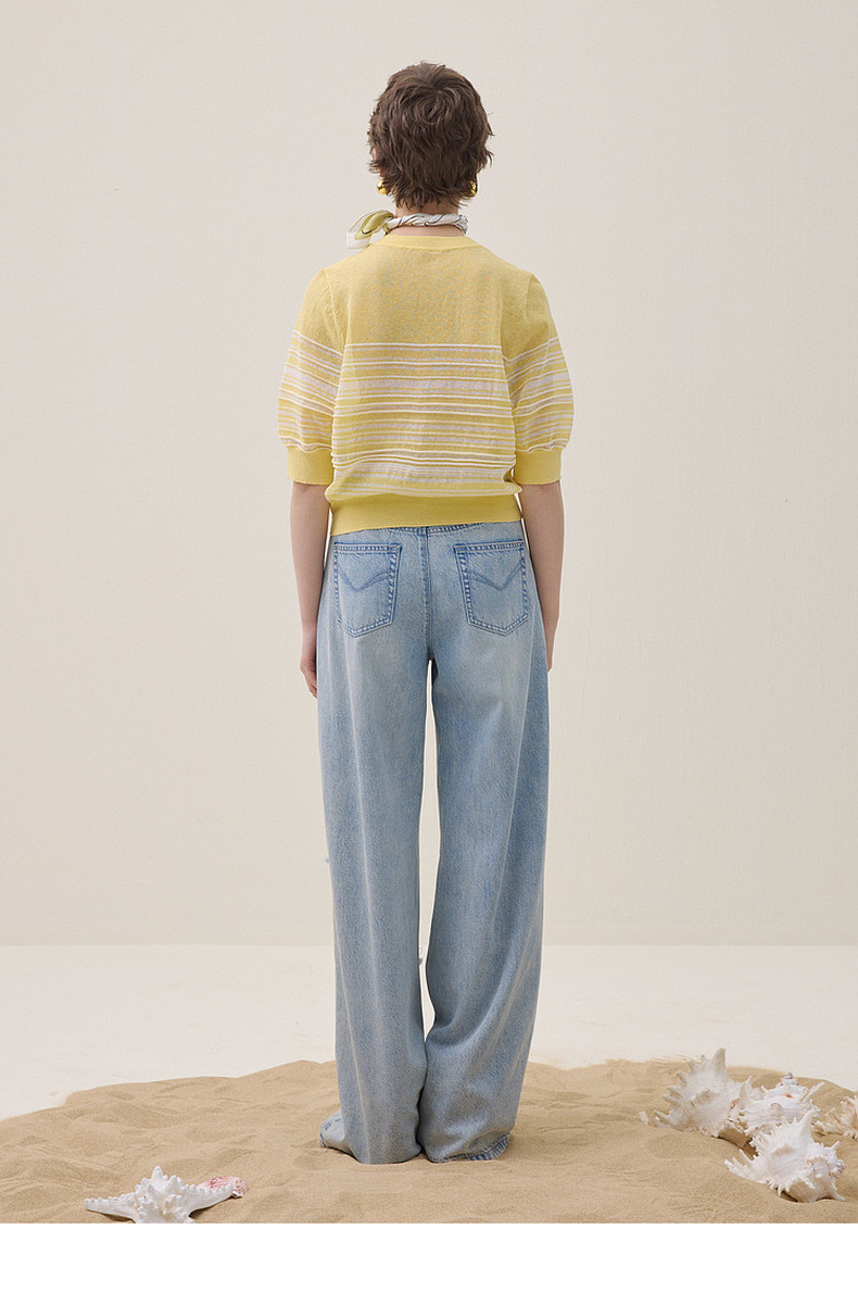 谜底圆领套头针织衫长袖2025年冬季新品宽松条纹亲肤女254MZ1906