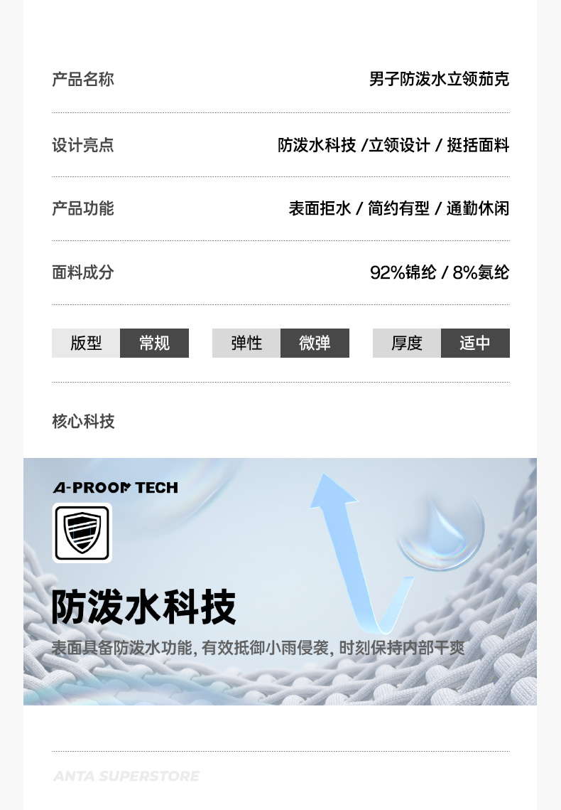 超级安踏外套男秋季新款防泼水通勤行政夹克休闲上衣152538607U