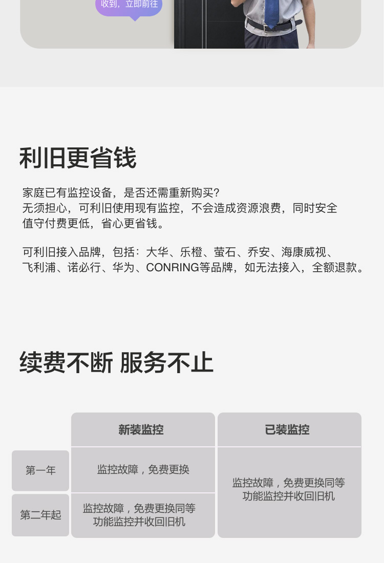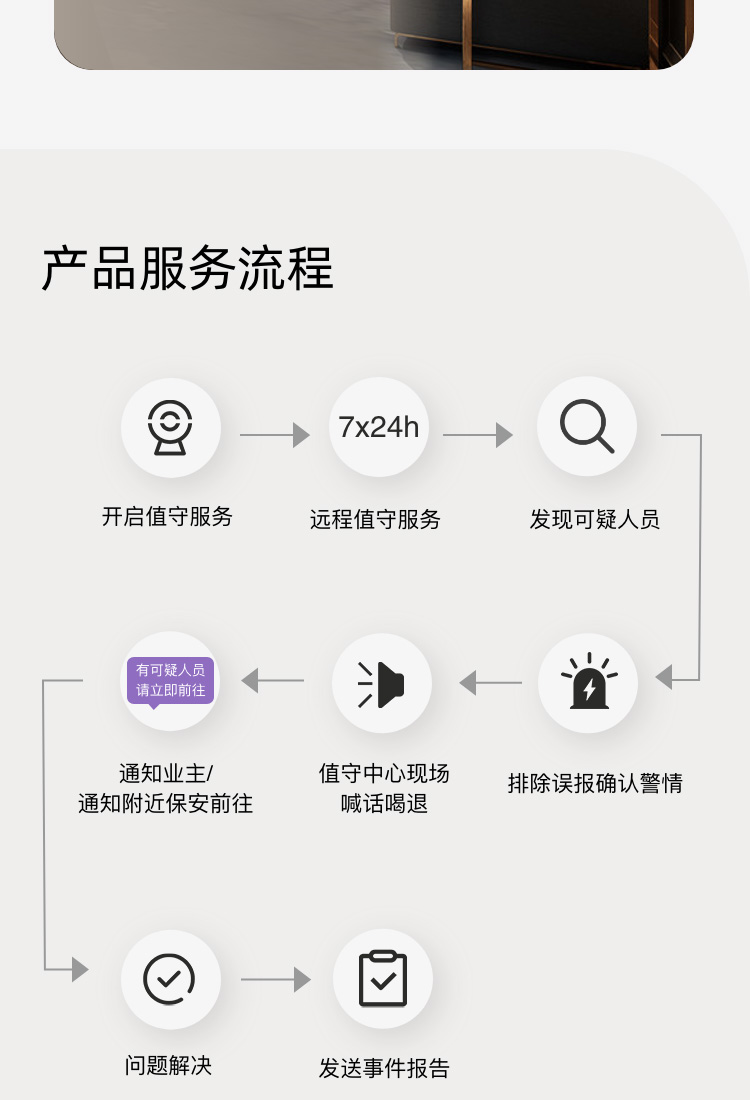 我们为客户提供家庭、商住场景的24小时在线防盗、防火、防毒以及无人化管理服务。实现老旧电子、消防设备“e”键入云,99%时间无故障使用,并升级智能化能力。