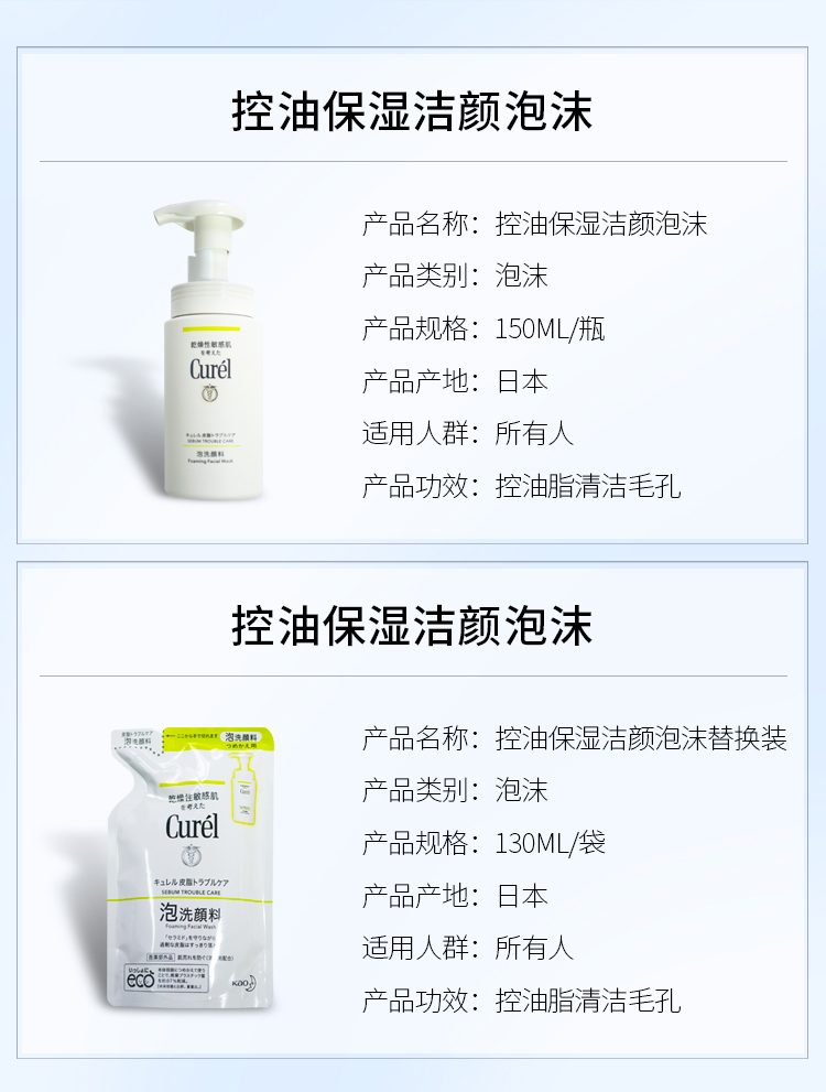 珂润润控油洁颜泡沫150ml