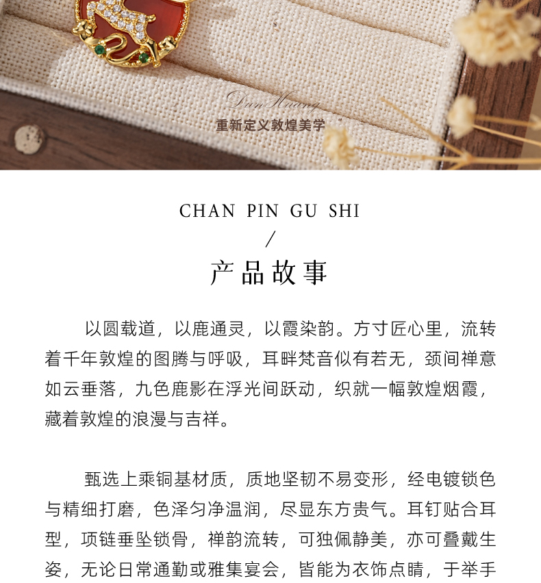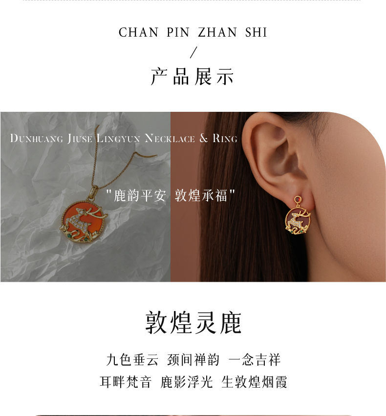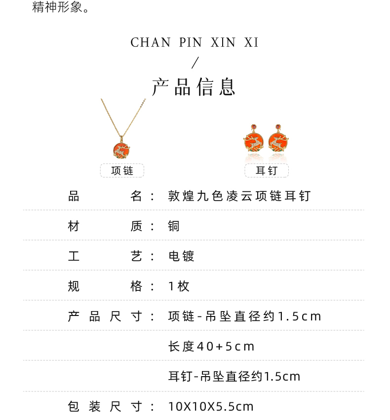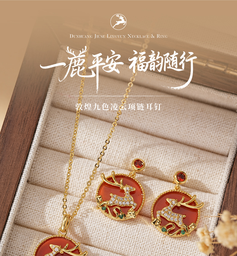 敦煌研究院【敦煌九色凌云项链耳钉 】文创项链吊坠耳钉饰品时尚套装
