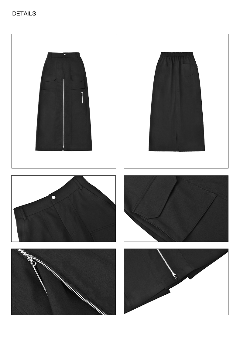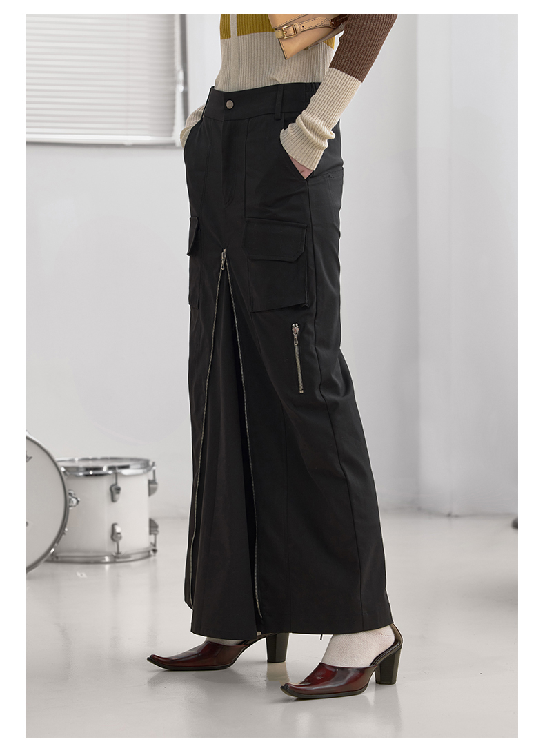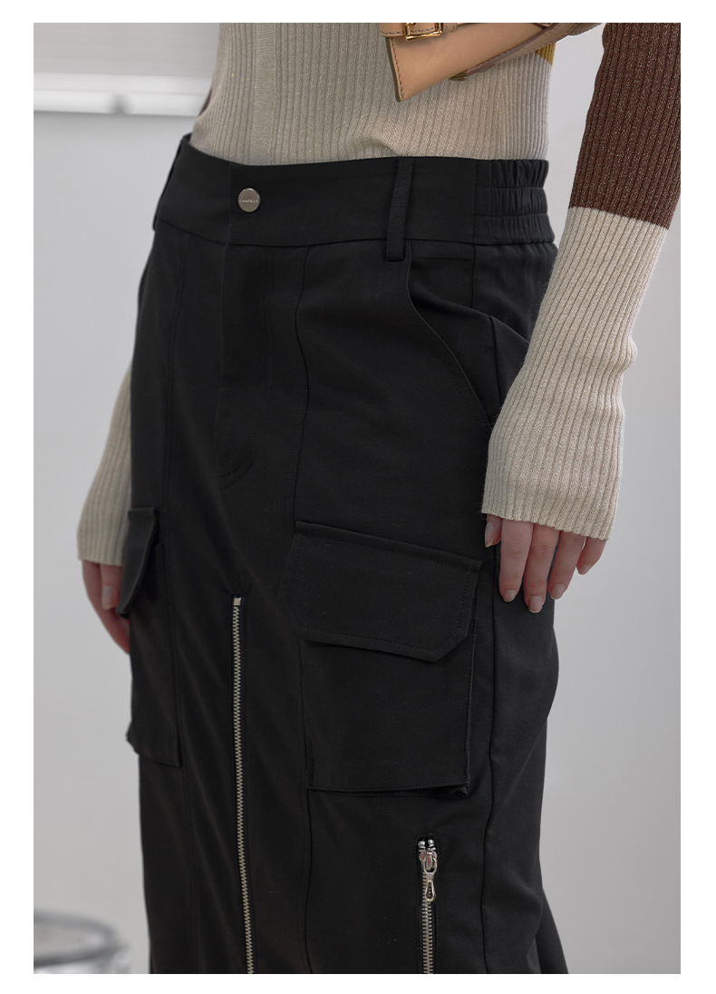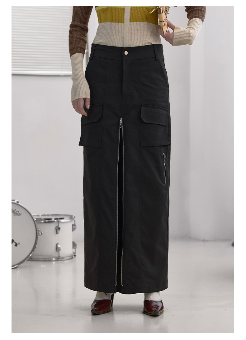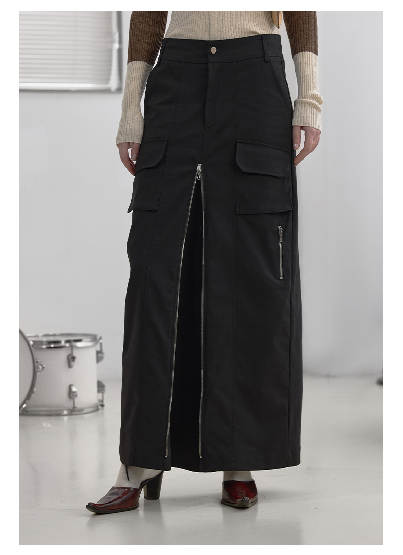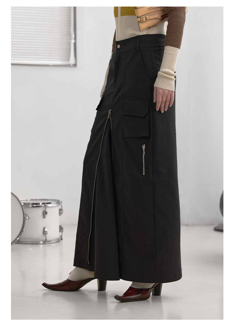 NUTH“思维分叉”|黑色多口袋长裙结构拉链设计感半身裙