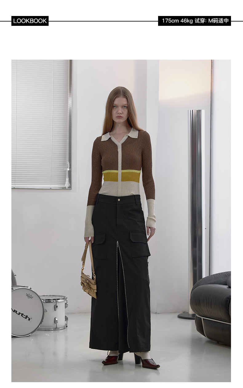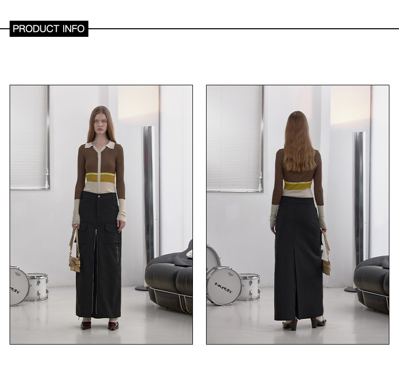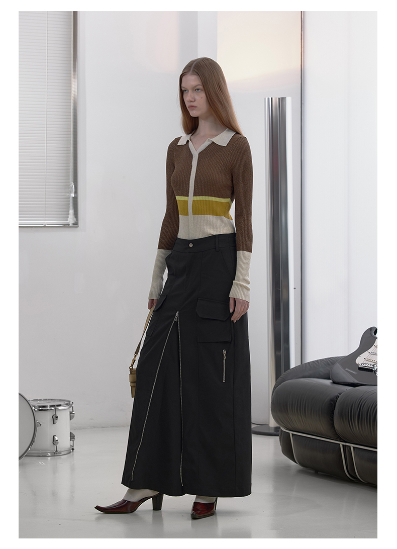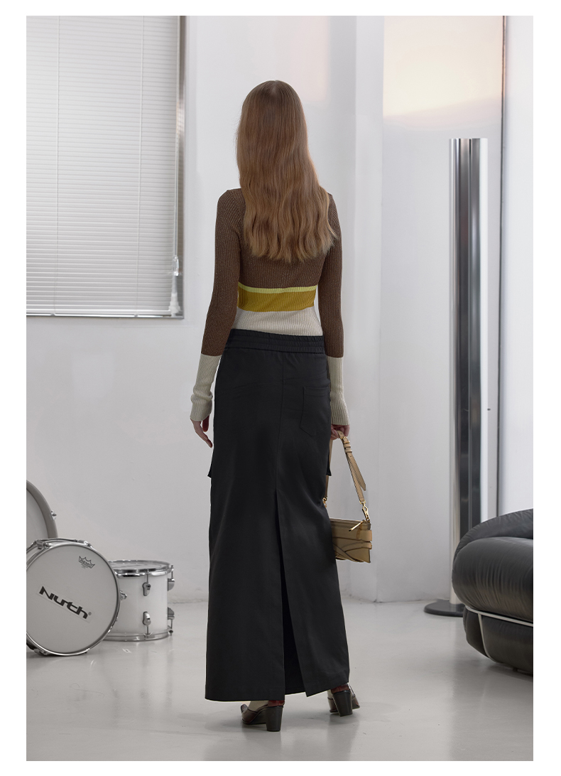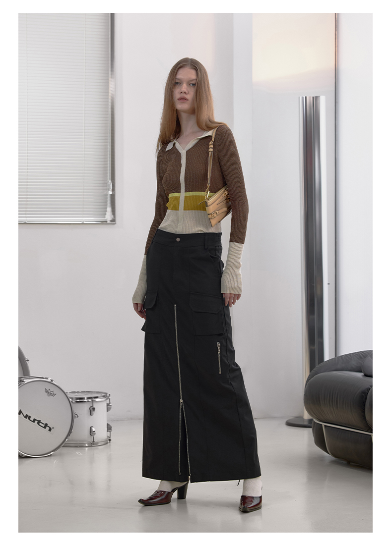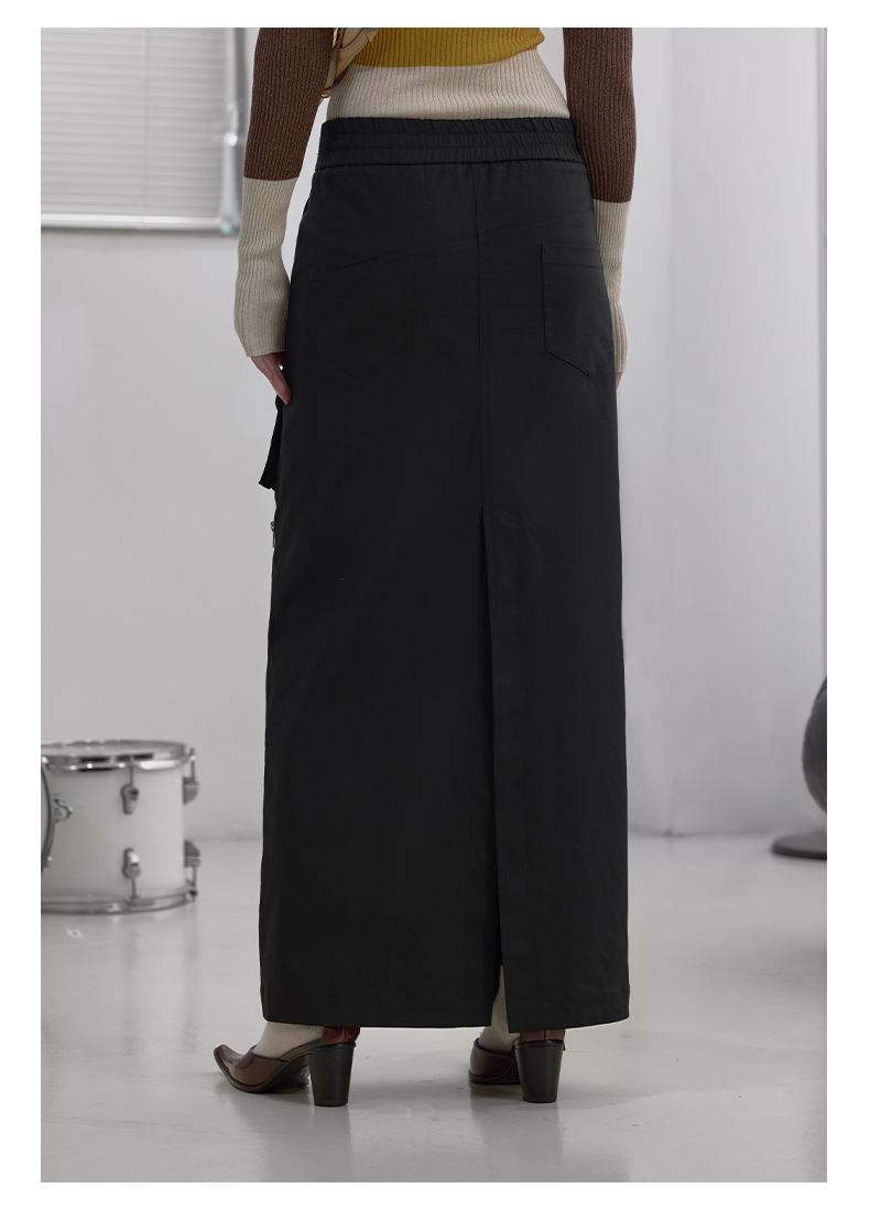 NUTH“思维分叉”|黑色多口袋长裙结构拉链设计感半身裙