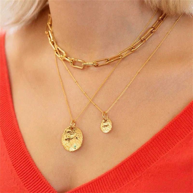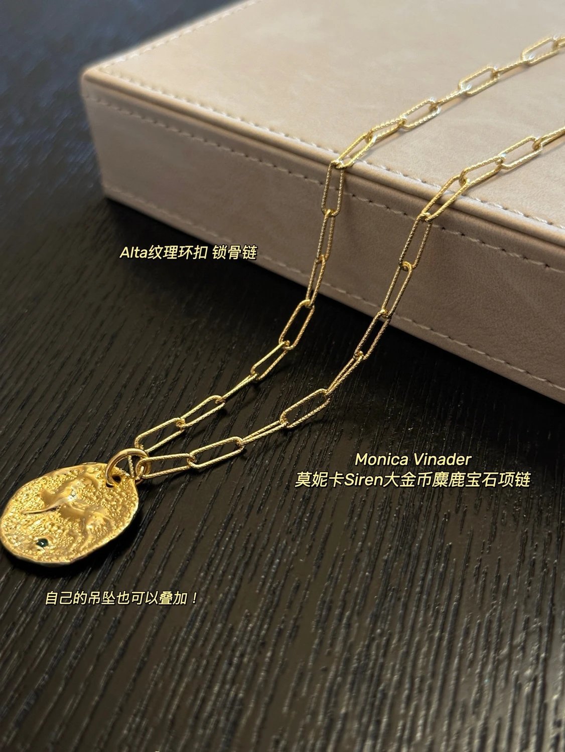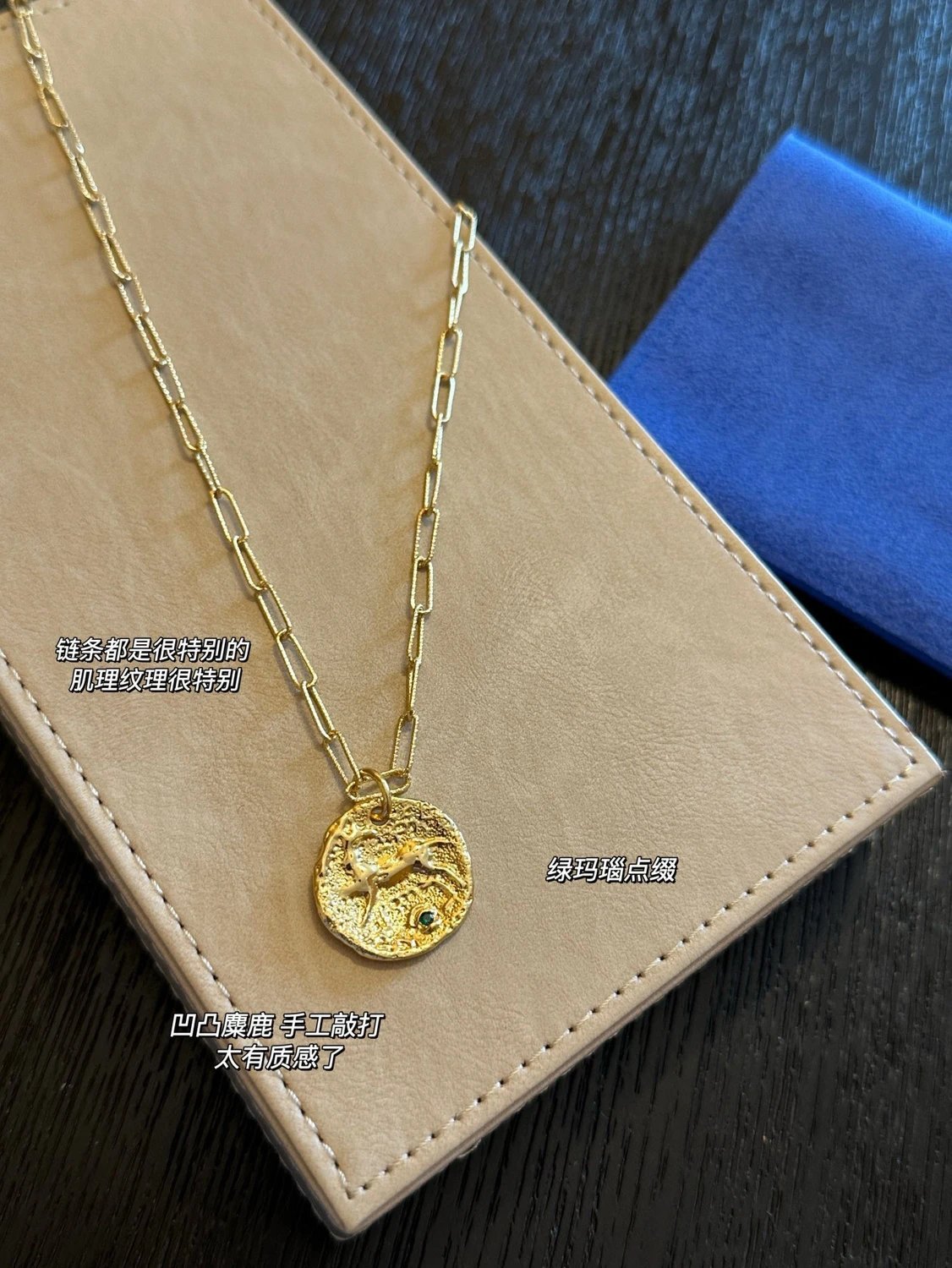 Alta纹理环扣锁骨链➕金币麋鹿吊坠