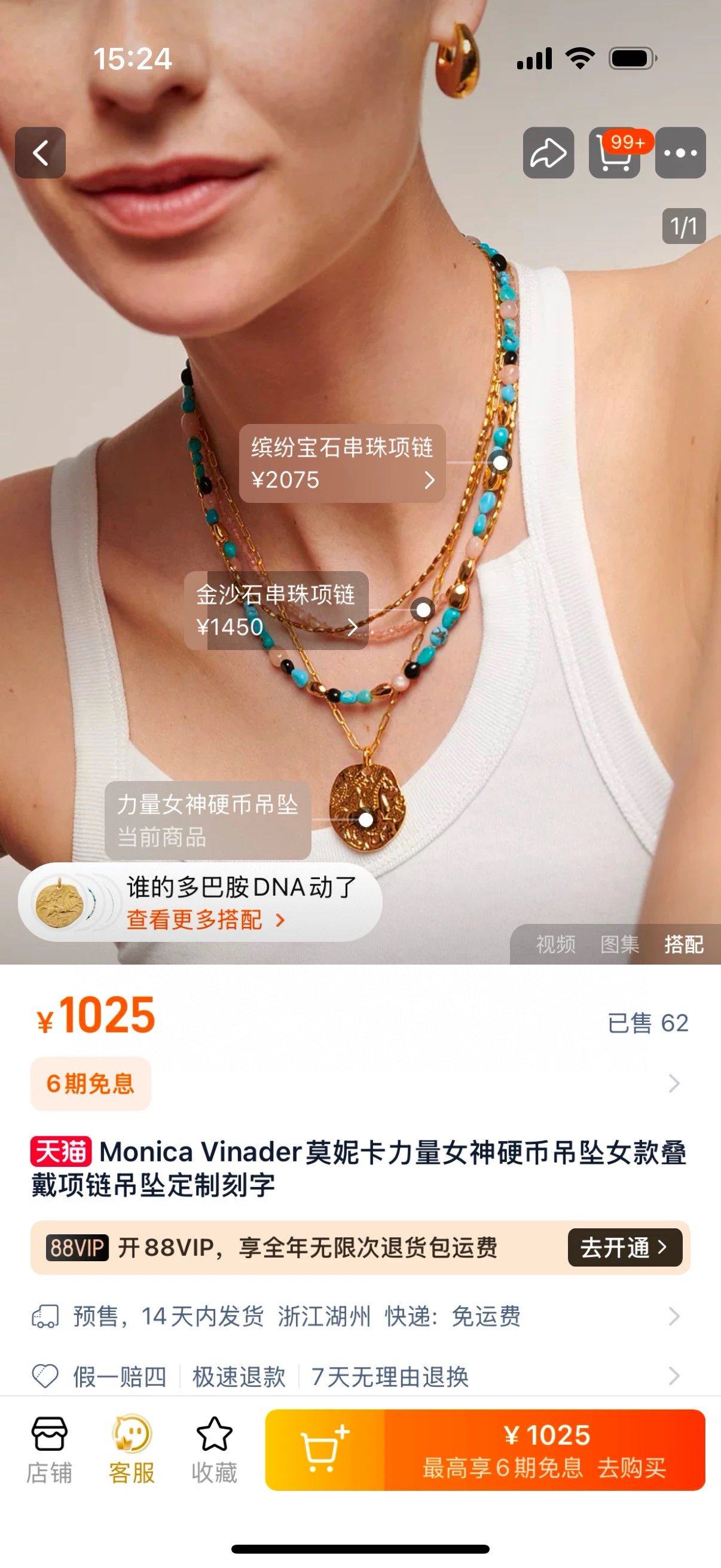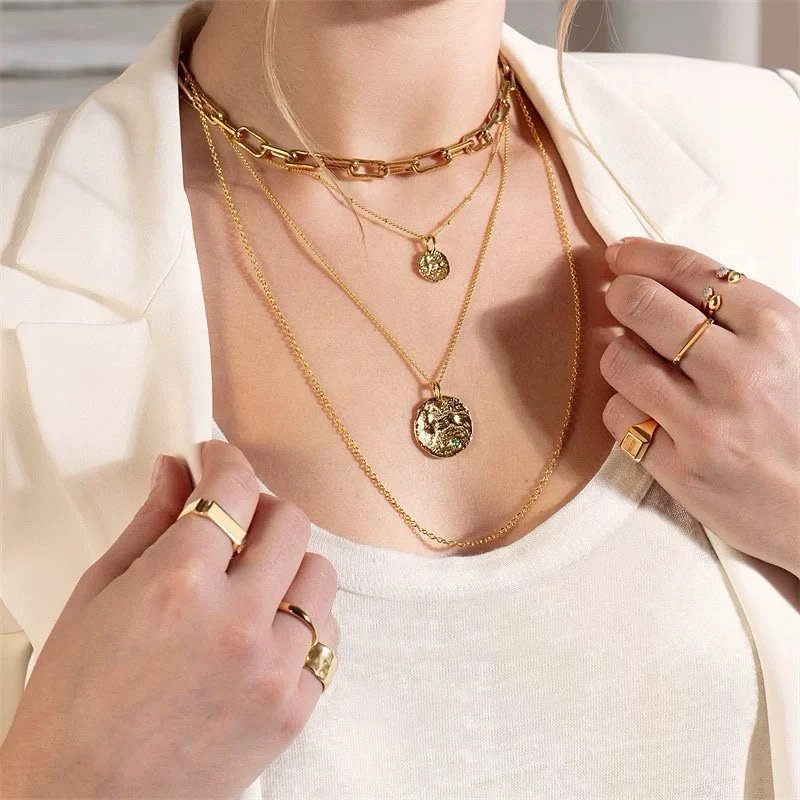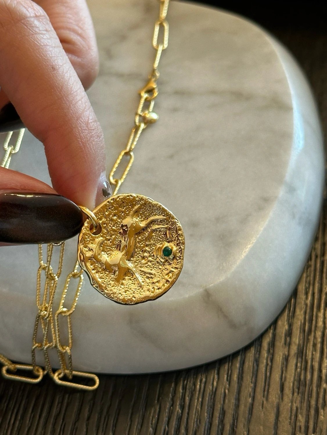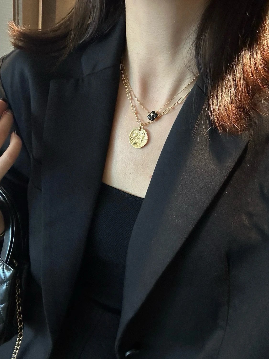 Alta纹理环扣锁骨链➕金币麋鹿吊坠