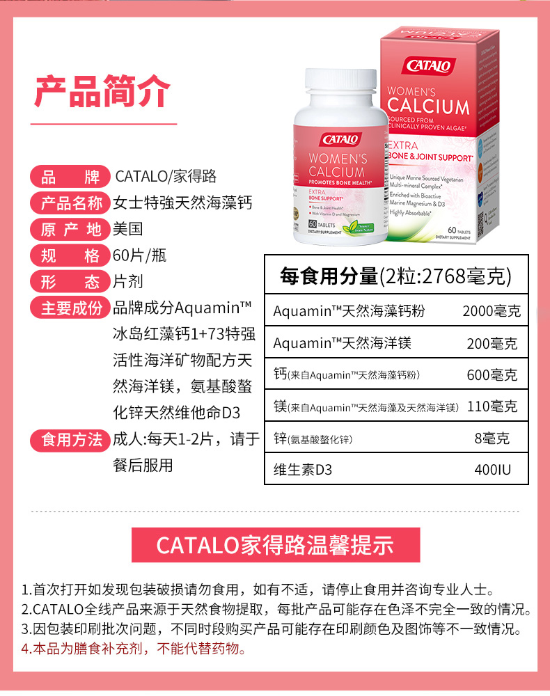 Catalo 家得路 女士天然海藻钙 60粒
