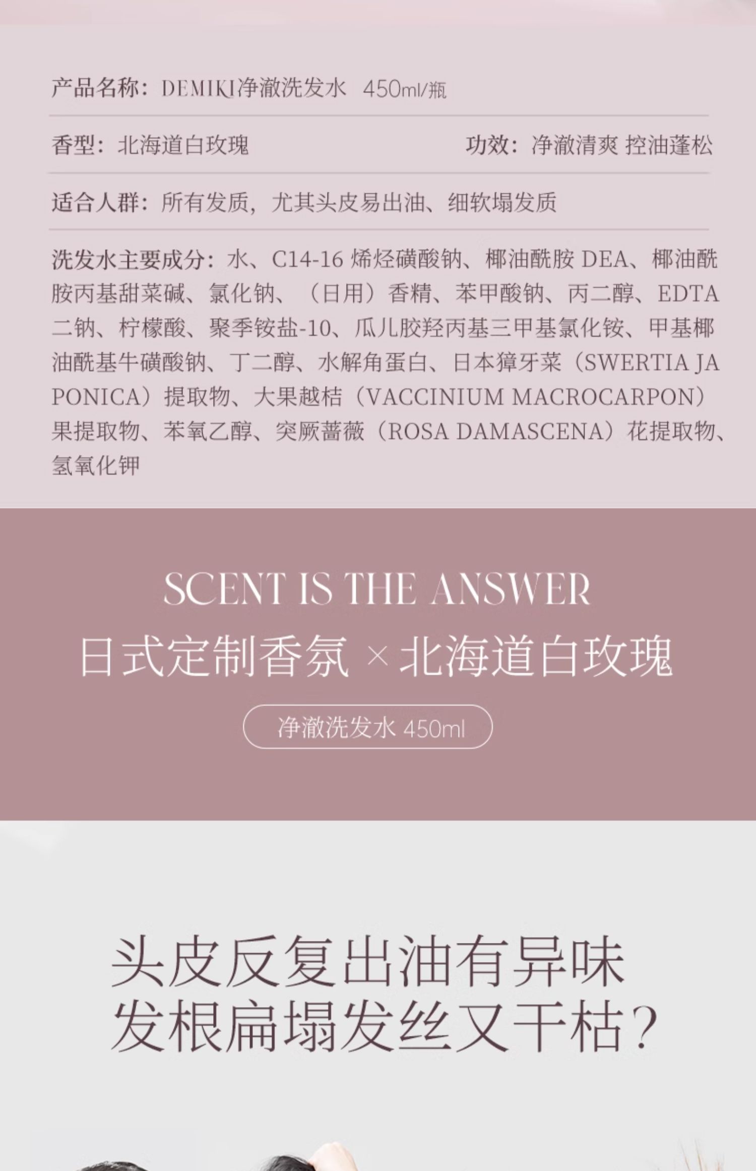 【礼想心动】Demiki 黛觅希 净澈洗发水 白玫瑰香 450ml