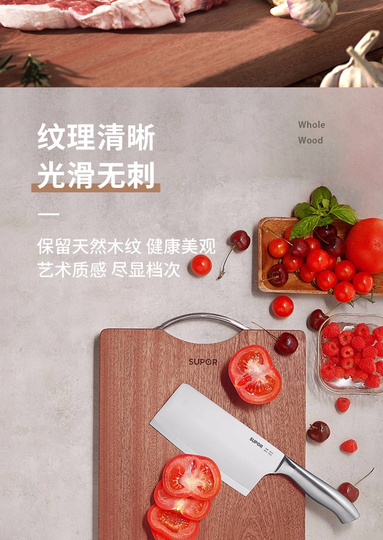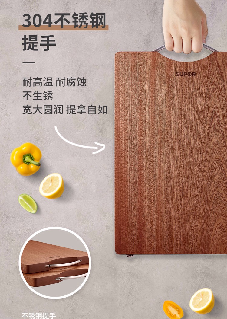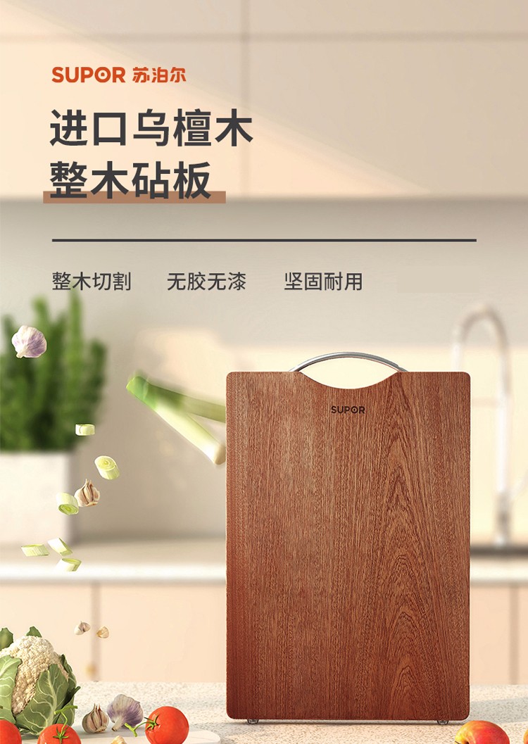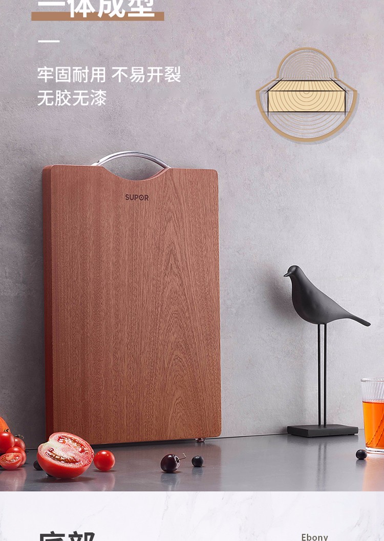 苏泊尔(SUPOR)进口乌檀木切菜板和面板案板家用长方形实木砧板切菜剁骨擀面切水果无缝无胶40*28*2.5 中号W402825AC1