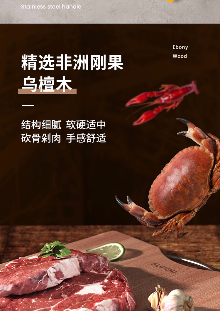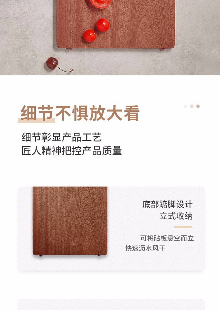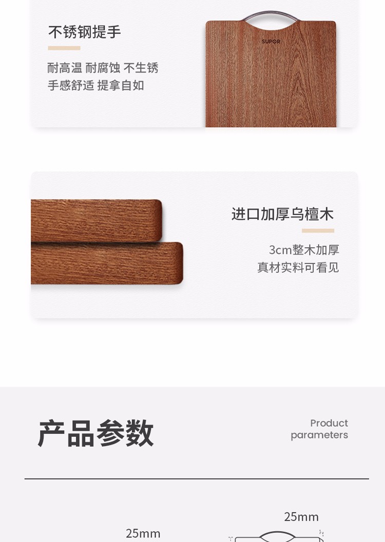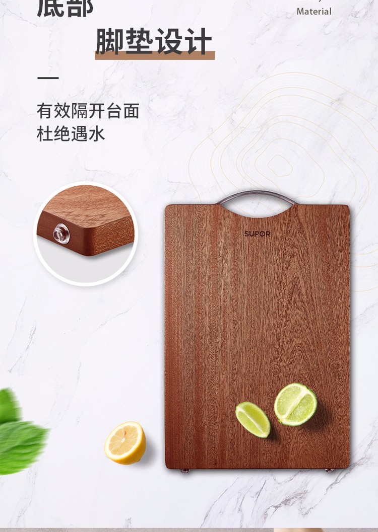 苏泊尔(SUPOR)进口乌檀木切菜板和面板案板家用长方形实木砧板切菜剁骨擀面切水果无缝无胶40*28*2.5 中号W402825AC1