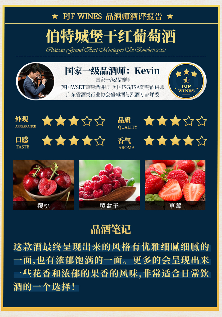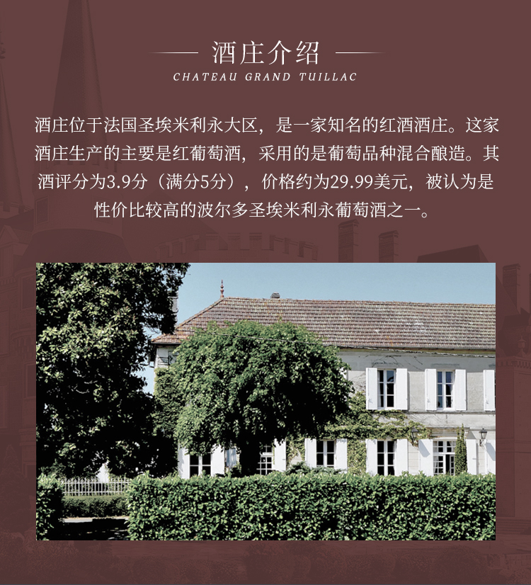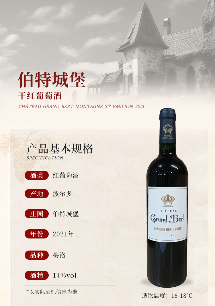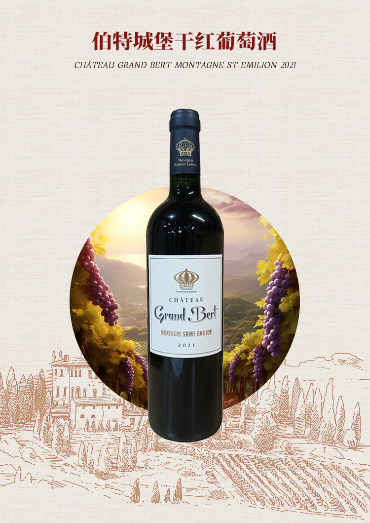 2021 Château Grand Bert Montagne St Emilion, Bordeaux, France 伯特城堡干红葡萄酒