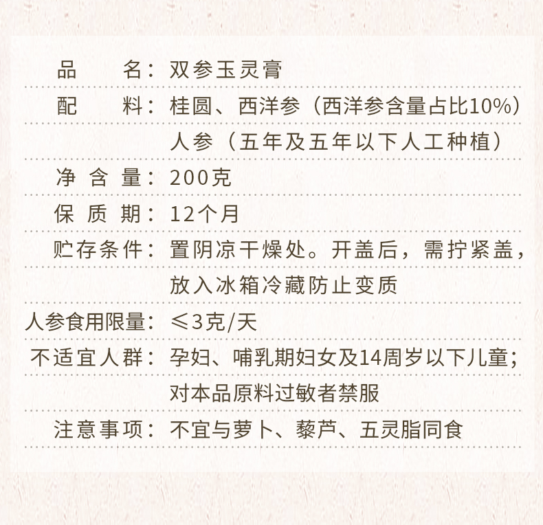 优选丨长白山人参双参玉灵膏200g西洋参人参