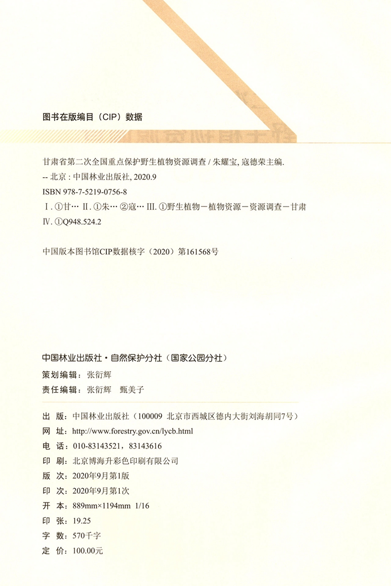 甘肃省第二次全国重点保护野生植物资源调查(精) 朱耀宝//寇德荣 0756 中国林业出版社