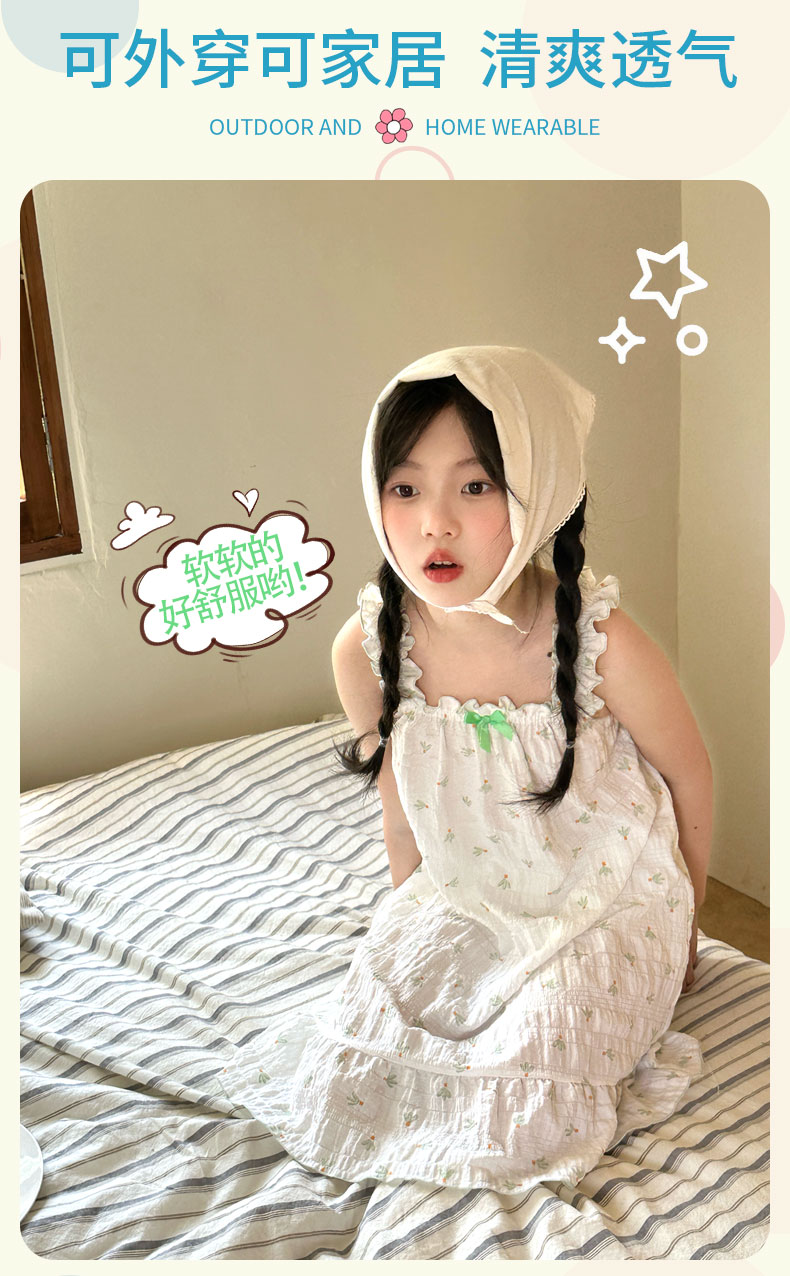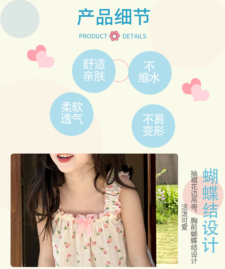 【A类品质,买一送一】【夏日必备】女童夏日泡泡裙宽花边褶皱设计蝴蝶结花边吊带泡泡裙100%