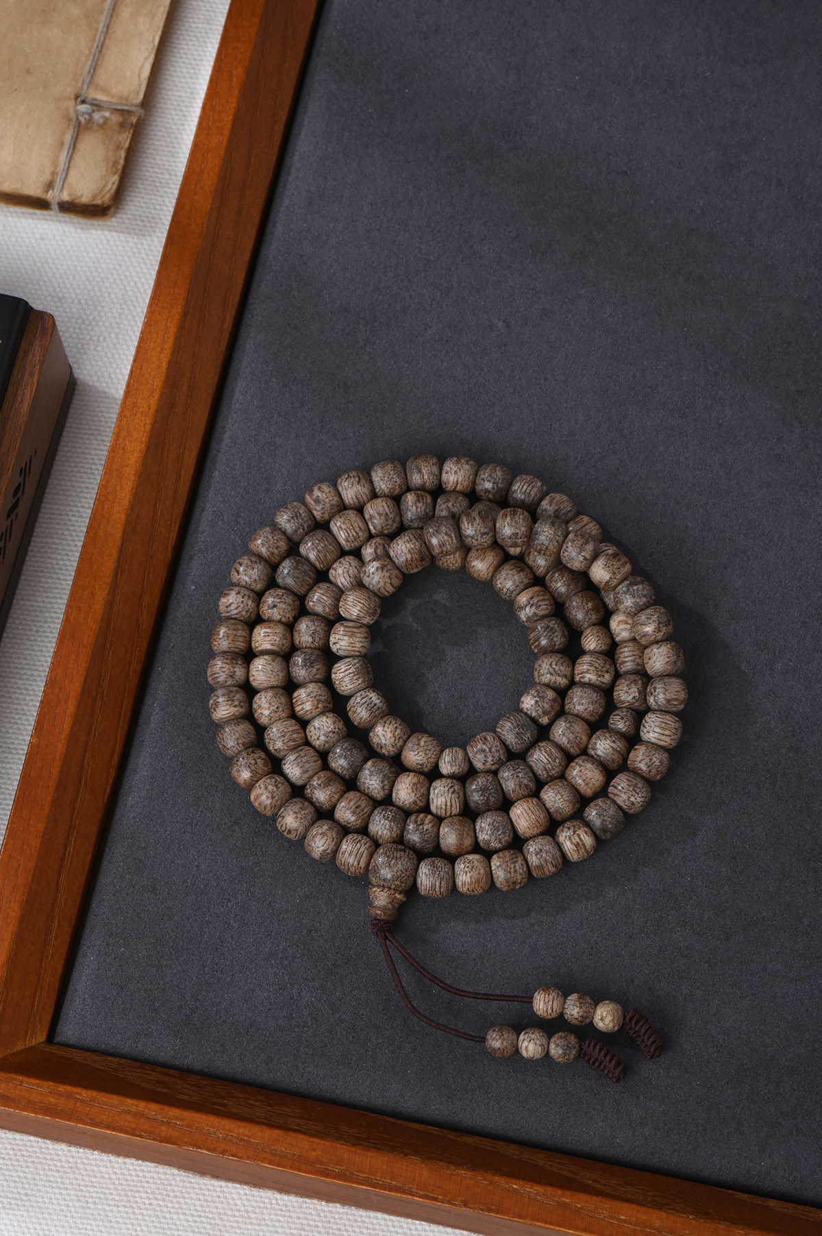 特意做成了108颗的小鼓珠,也叫苹果珠,雅致,寓意也好,平平安安。