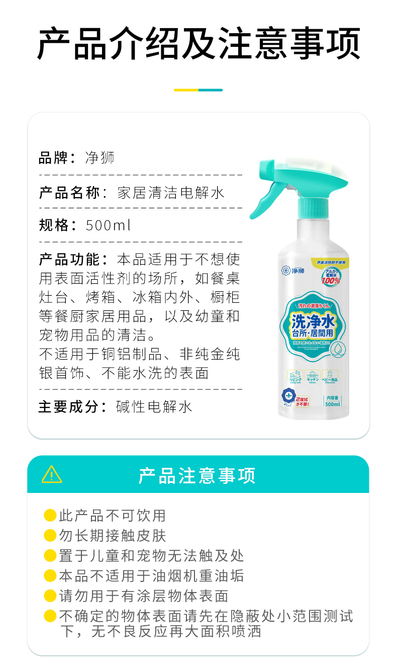 优选丨日本净狮家居清洁电解水 无毒免过水,干净无残留