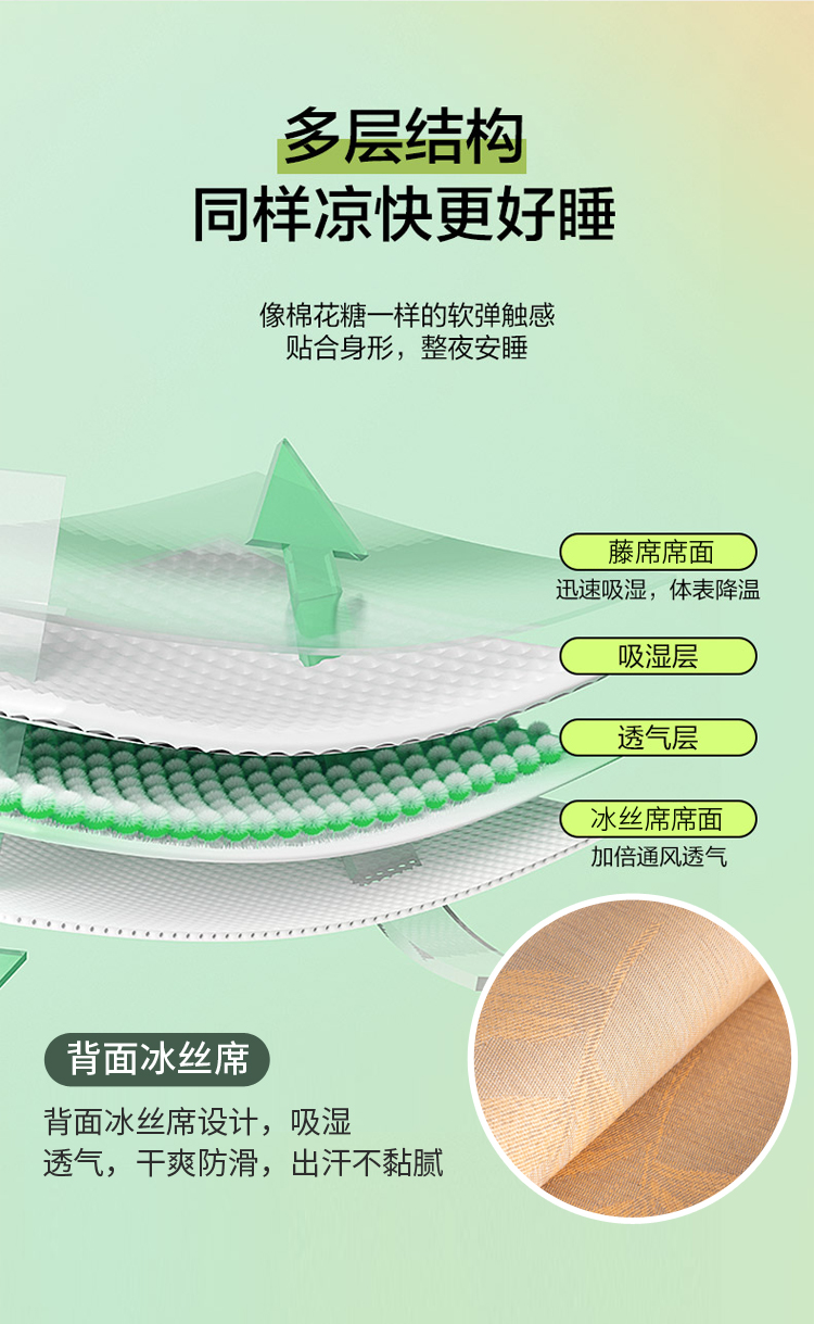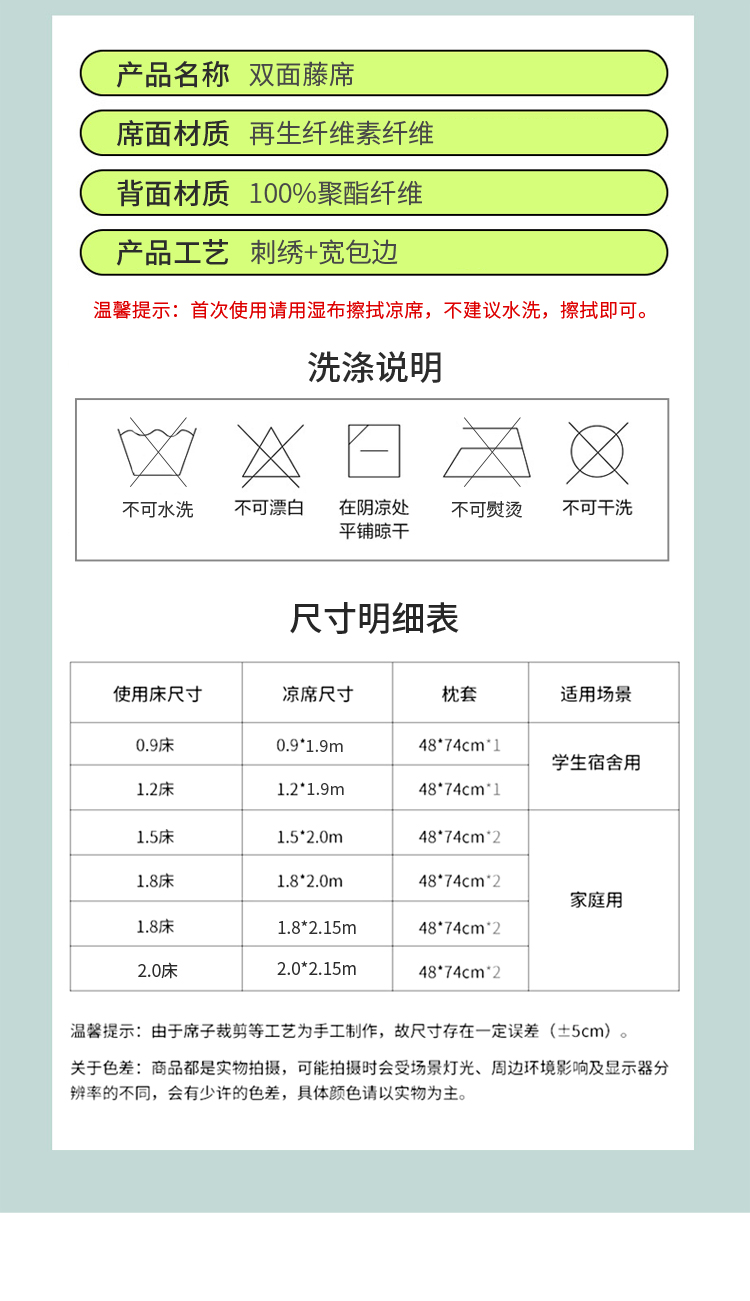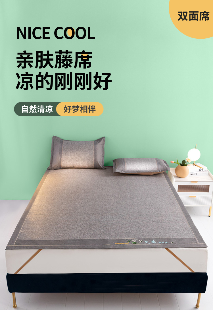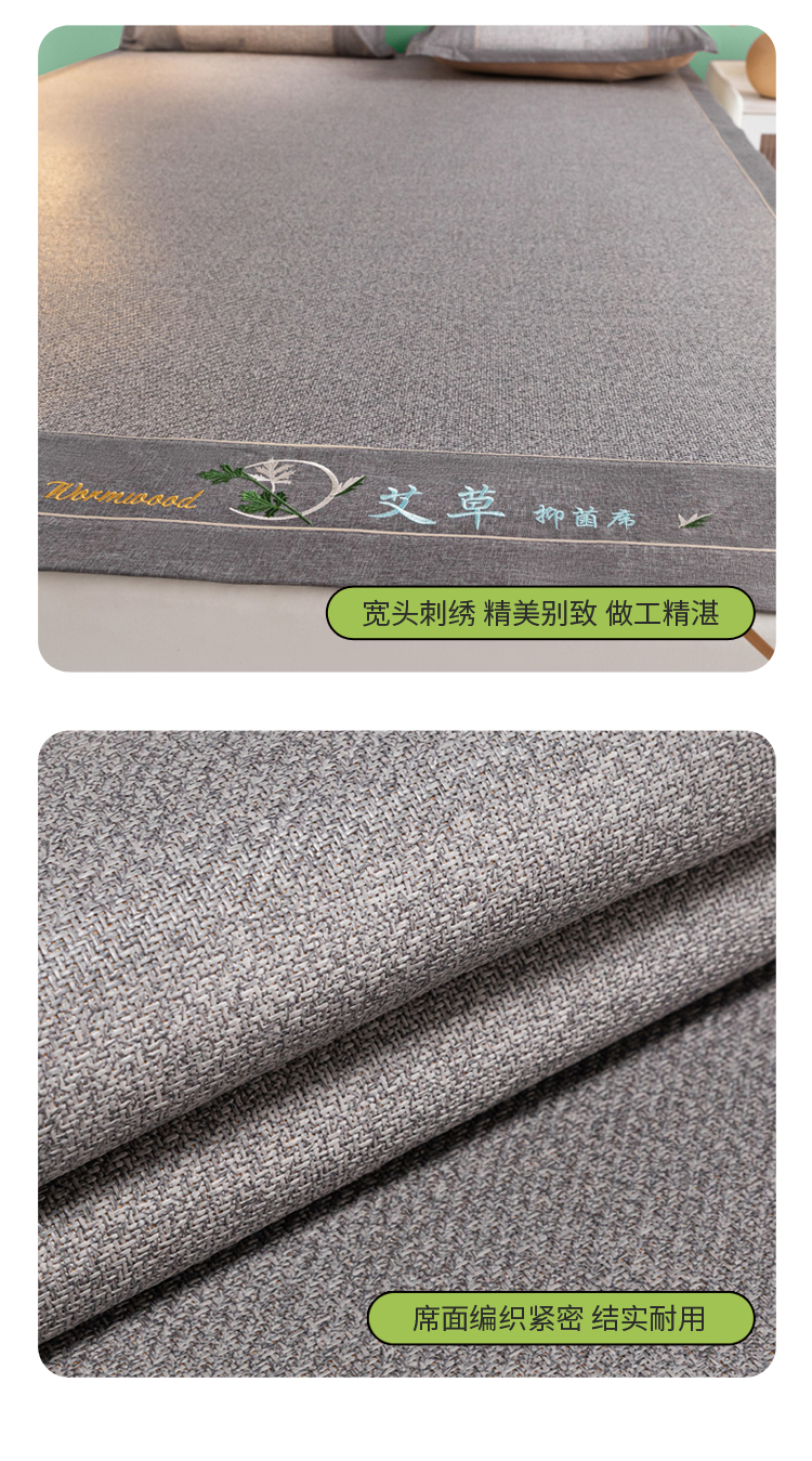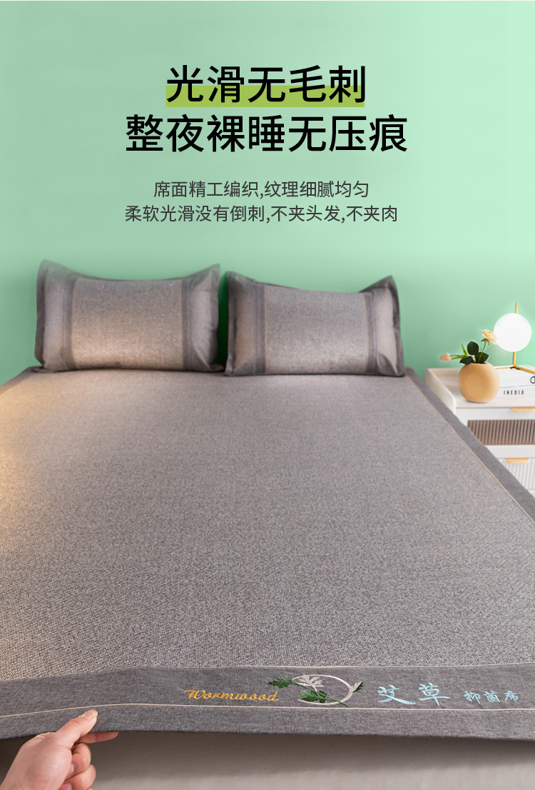 南方生活天然亲肤艾草绣花藤席三件套(180*200枕套48*74cm)