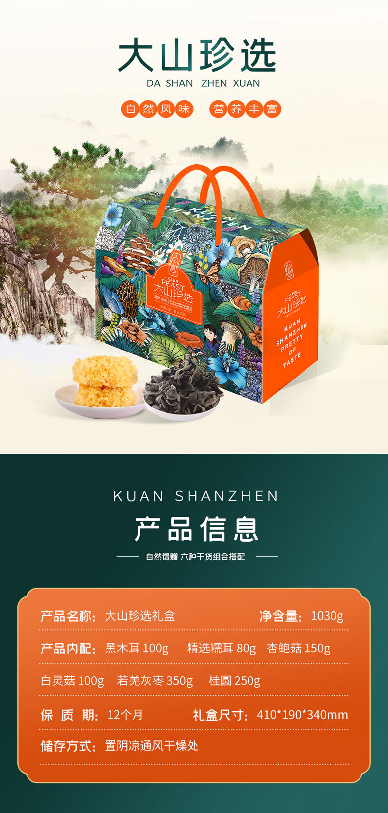 卡宴(KAUN) 山珍干菌礼盒春节年货送礼食用干货菌菇大礼包大山珍选1030g