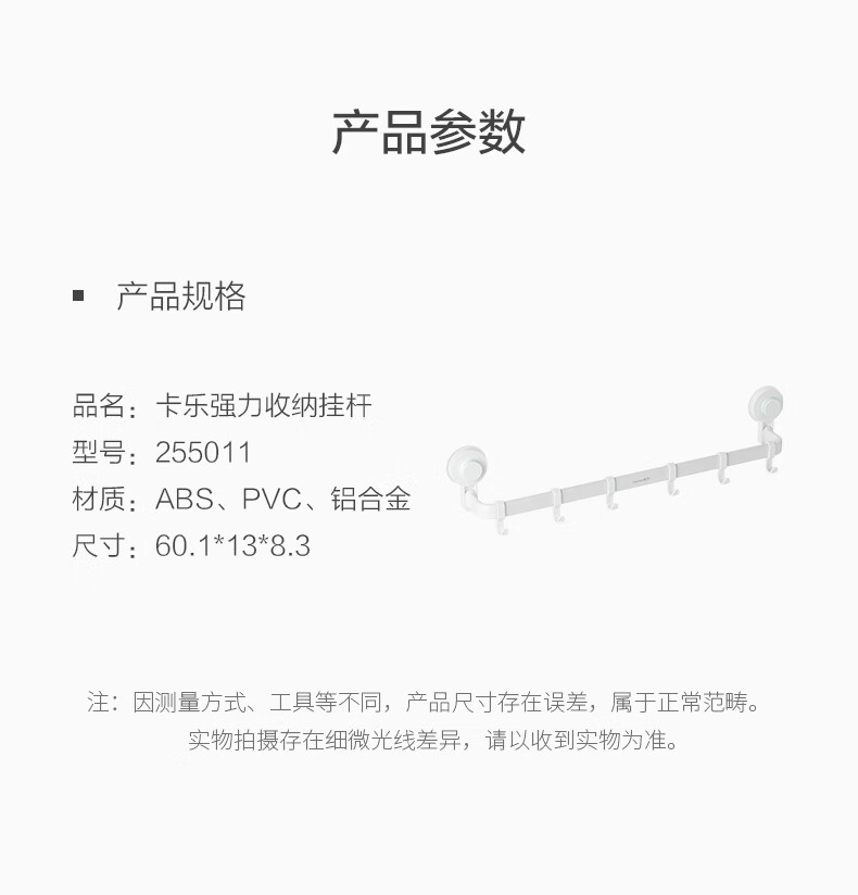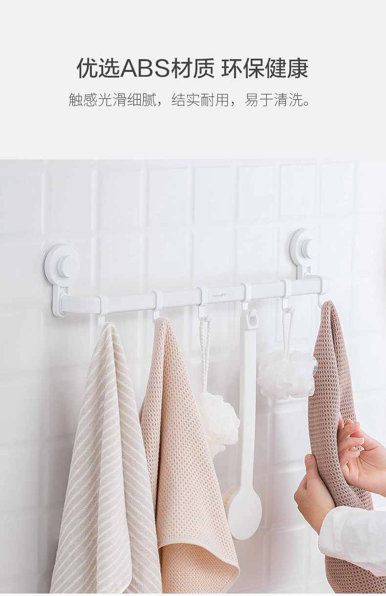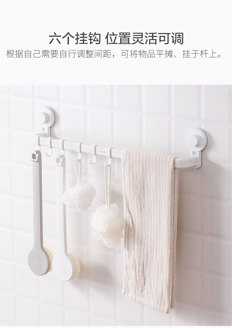 茶花 挂钩 卡乐强力免打孔吸壁收纳挂杆 255011