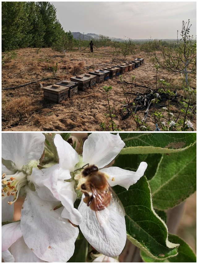 春季蜜蜂给苹果树的花授粉。从来不用人工授粉