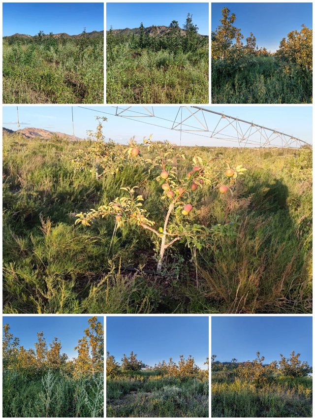 与草共舞的苹果树500亩苹果园,2.2万棵苹果树。不上黑科技狠活,再加上沙漠气候,树木生长缓慢、产量也级低.平均每棵树结果只有7—8斤。级其珍贵!