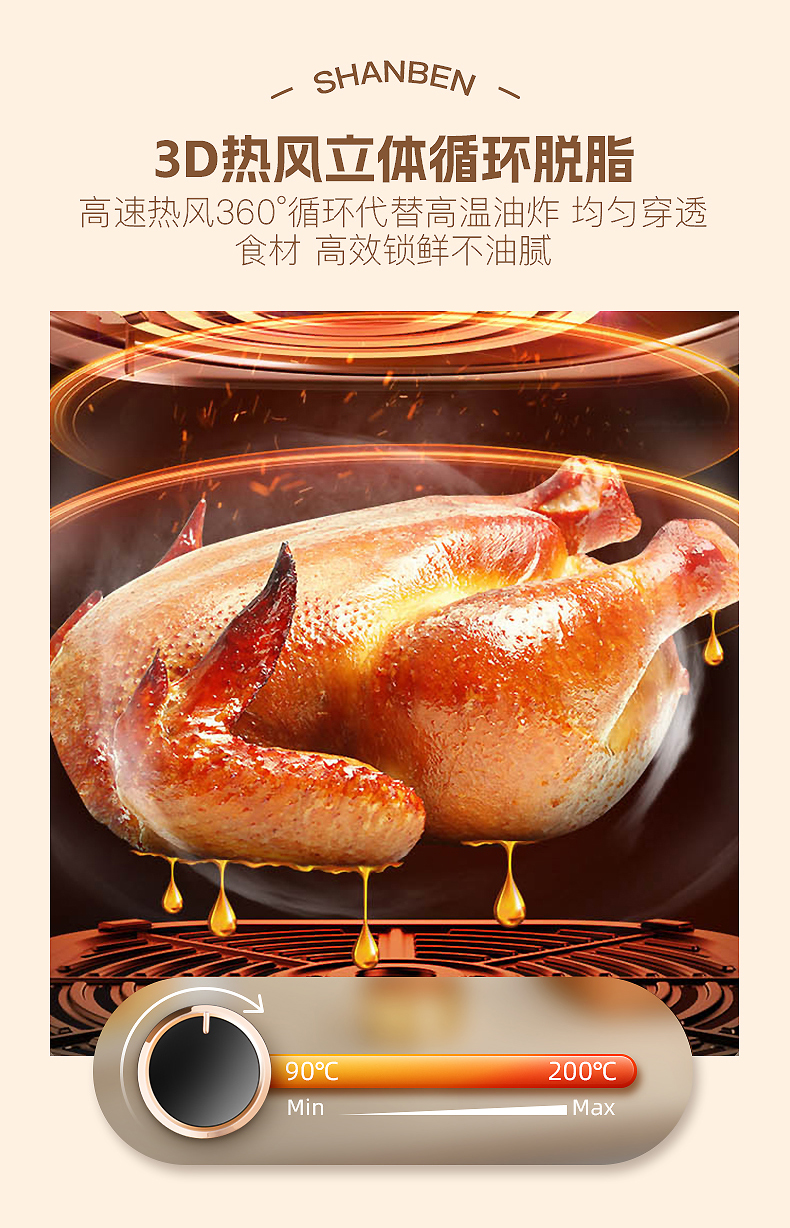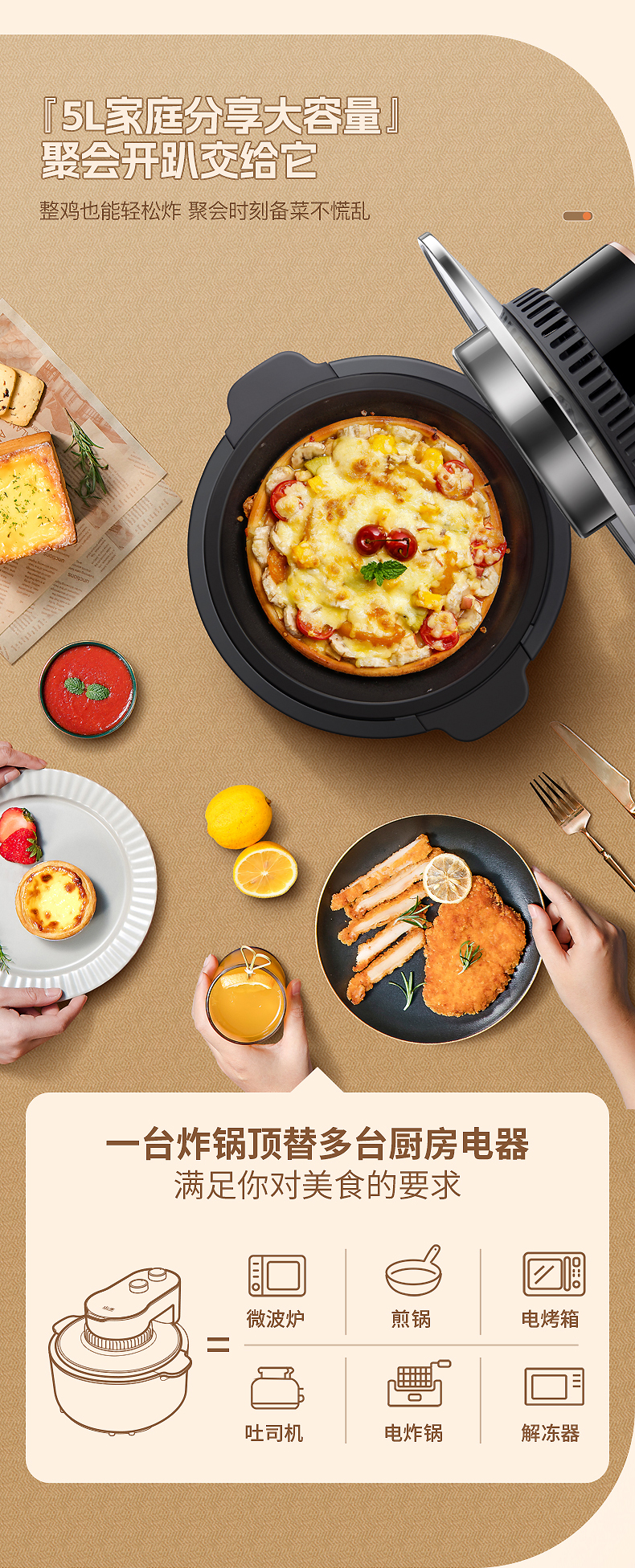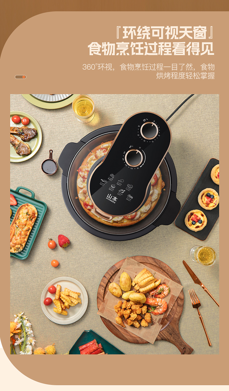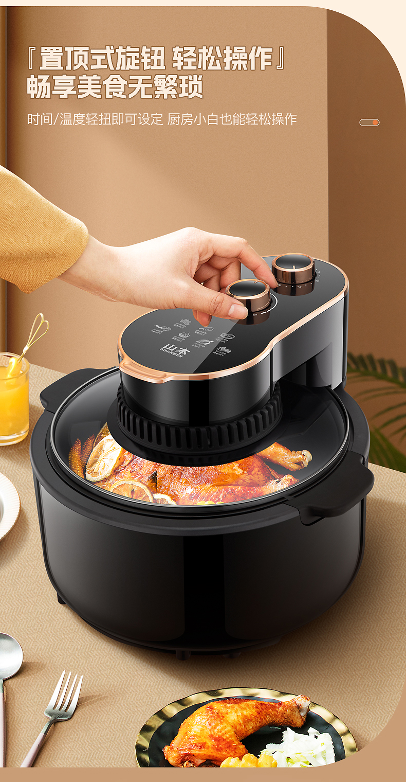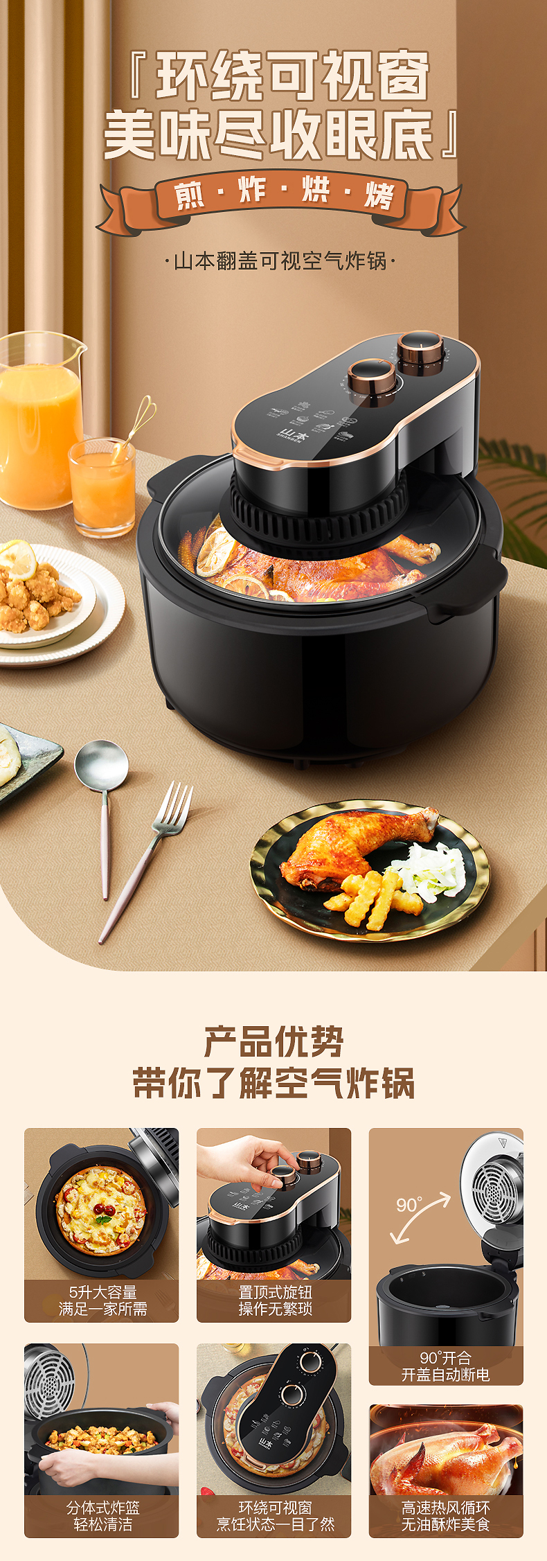 山本(SHANBEN) 空气炸锅5L大容量家用可视化翻盖多功能无油低脂智能大功率电炸锅薯条机电炸锅煎炸锅 S-AK50L 5L