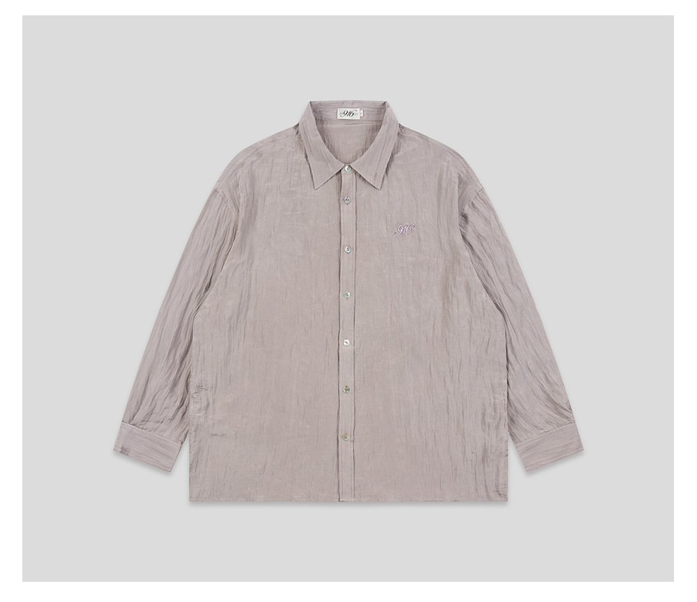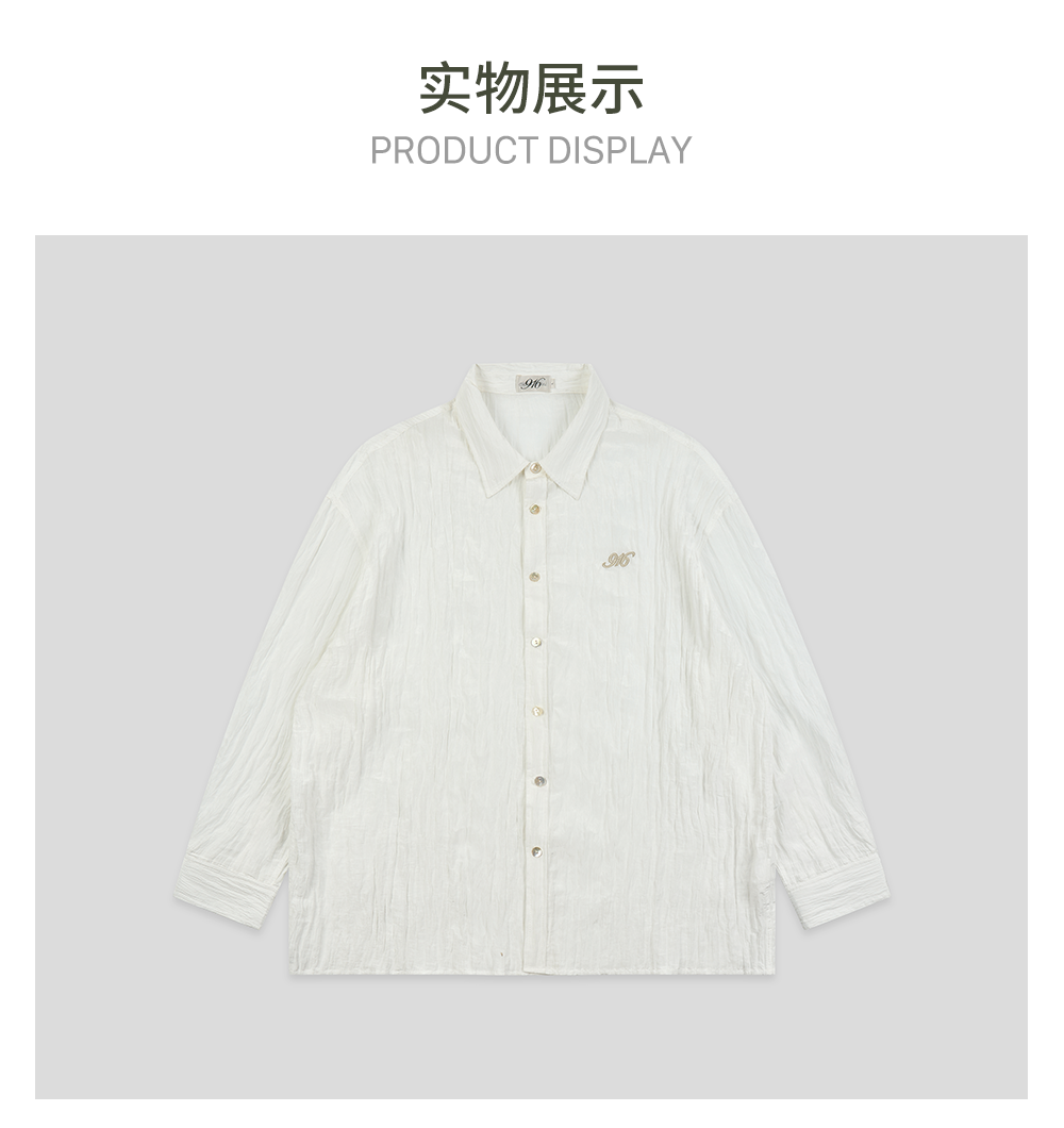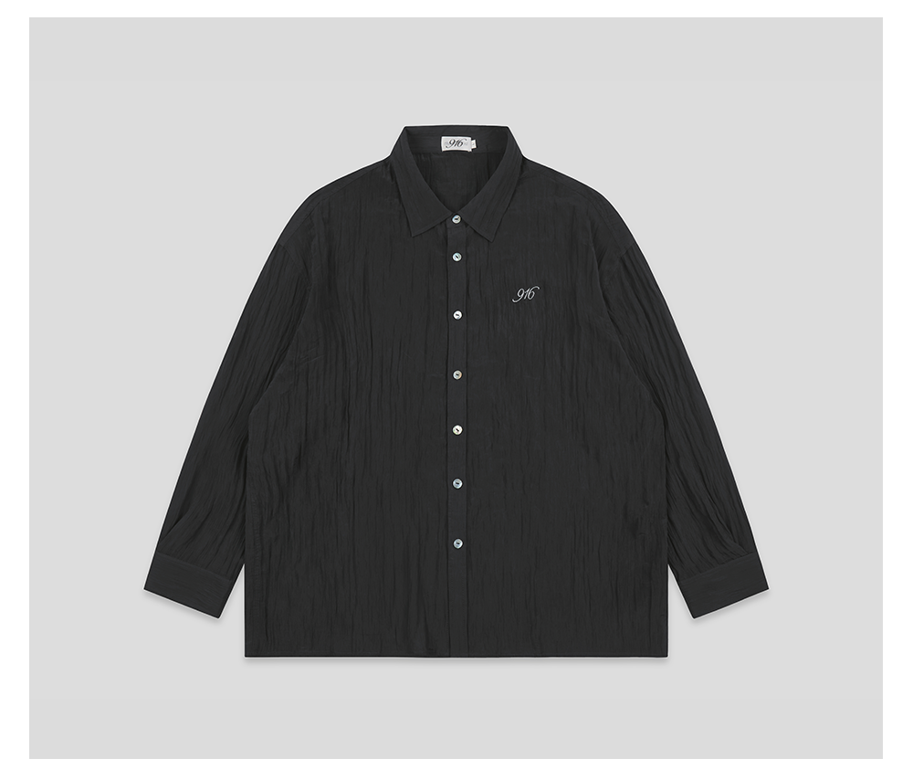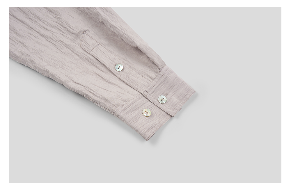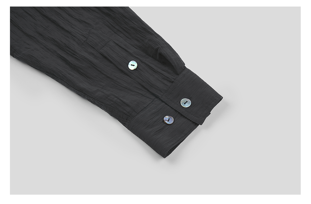 GOODBAI 916 褶皱肌理翻领贝壳扣轻薄长袖衬衫