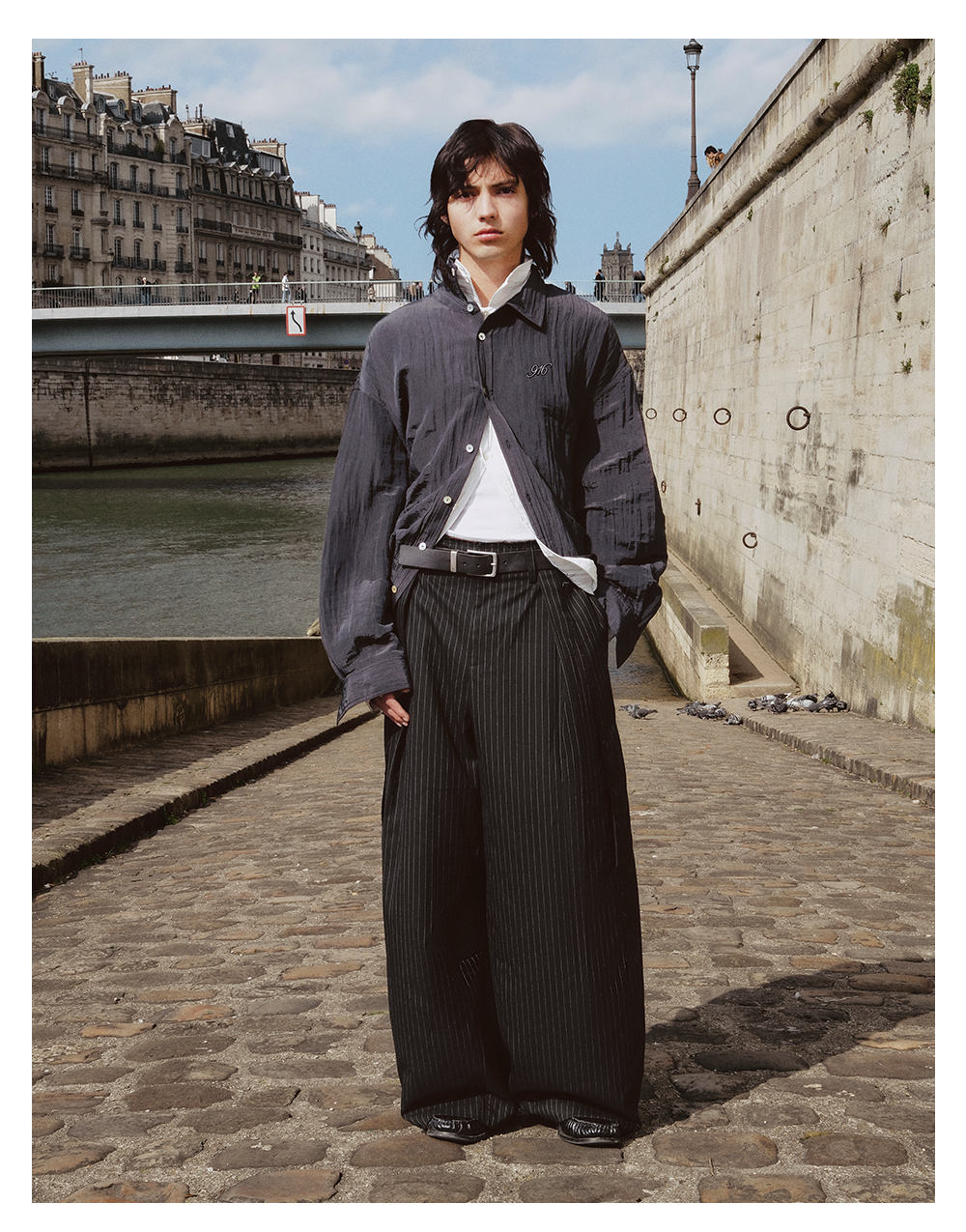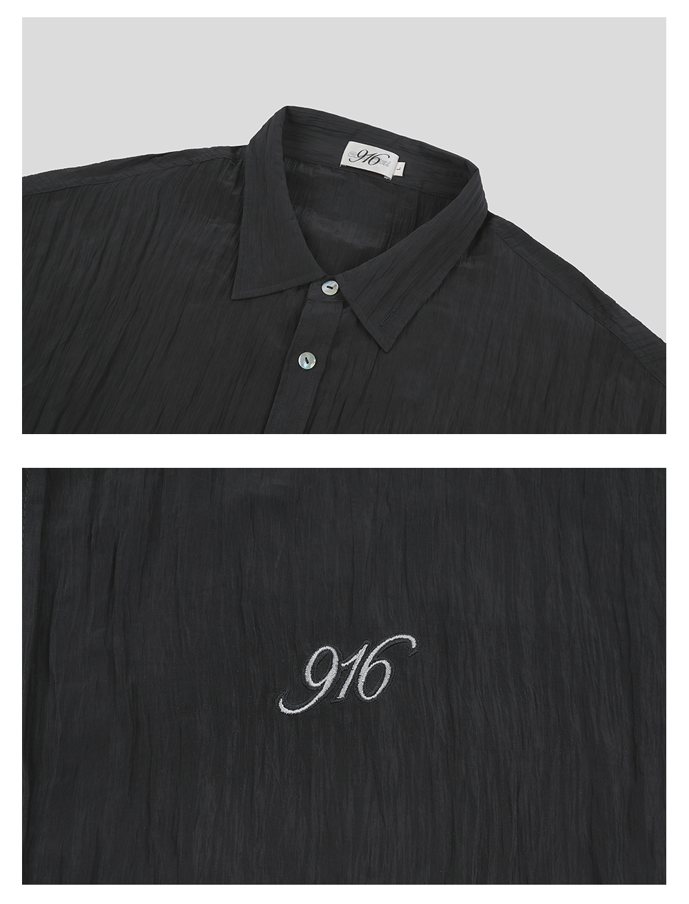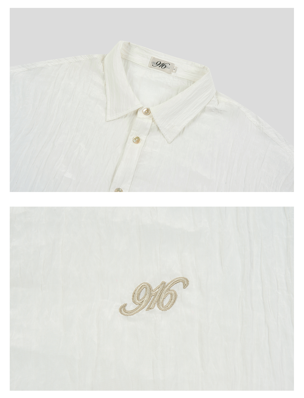 GOODBAI 916 褶皱肌理翻领贝壳扣轻薄长袖衬衫