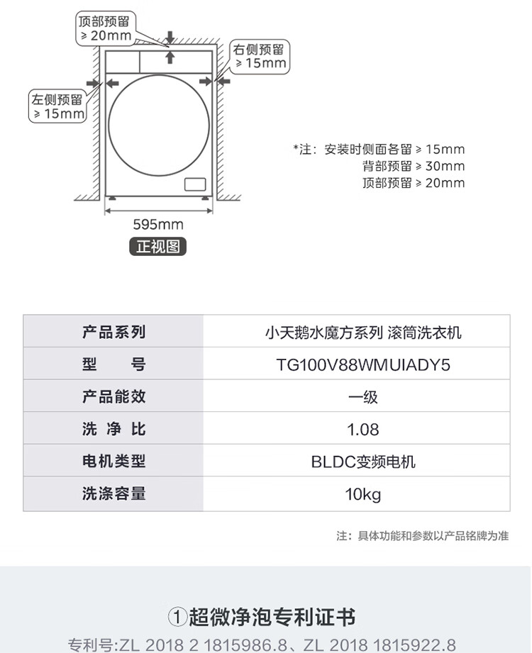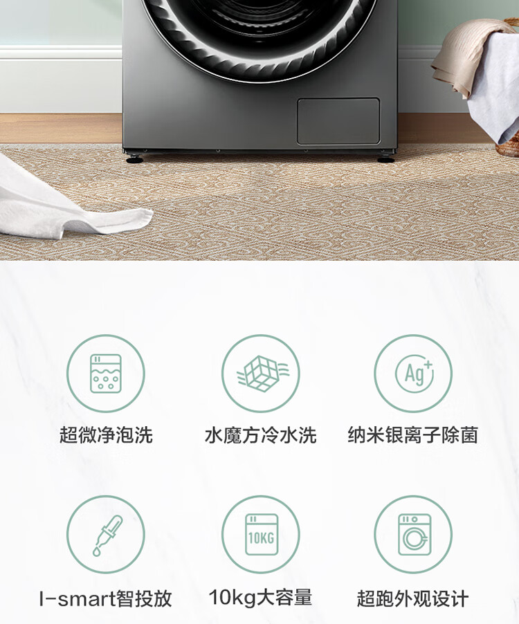 小天鹅(LittleSwan)滚筒洗衣全自动 超微净泡水魔方 物理去渍 智能投放 超薄10公斤 TG100V88WMUIADY5