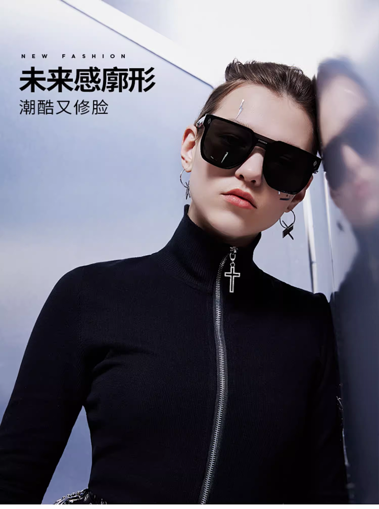 【品牌特惠】EYECROXX乘号墨镜女高级感显脸小黑色大框XS21009RazorC1
