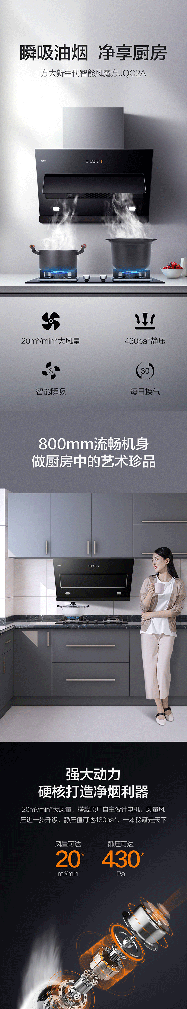 方太侧吸式抽吸油烟机燃气灶具烟灶套装顶吸家用厨房脱排20风量升级4.5KW火力JQC2A+TH31B