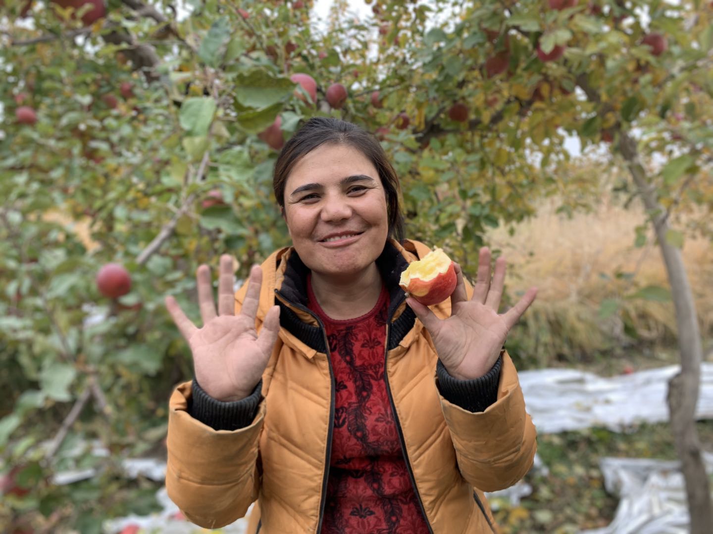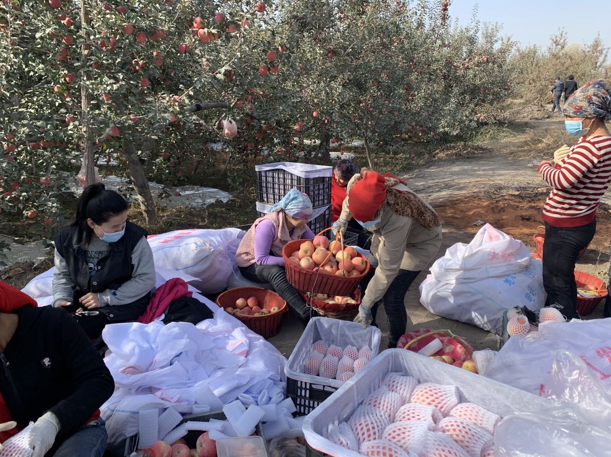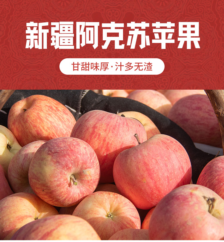 新疆风沙大,苹果表面会积有沙土。阿克苏苹果果形不端正,朝向太阳方向的苹果长得较大突出,颜色更红润,背光的果面部分底色是黄绿色。