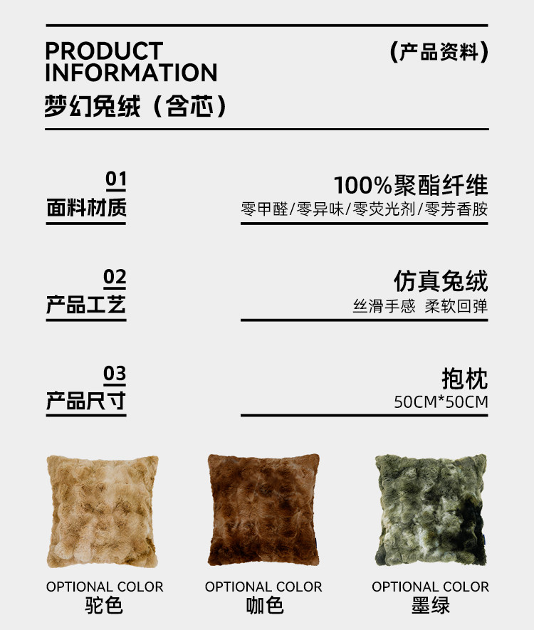 罗莱软装 梦幻兔绒抱枕 50*50cm