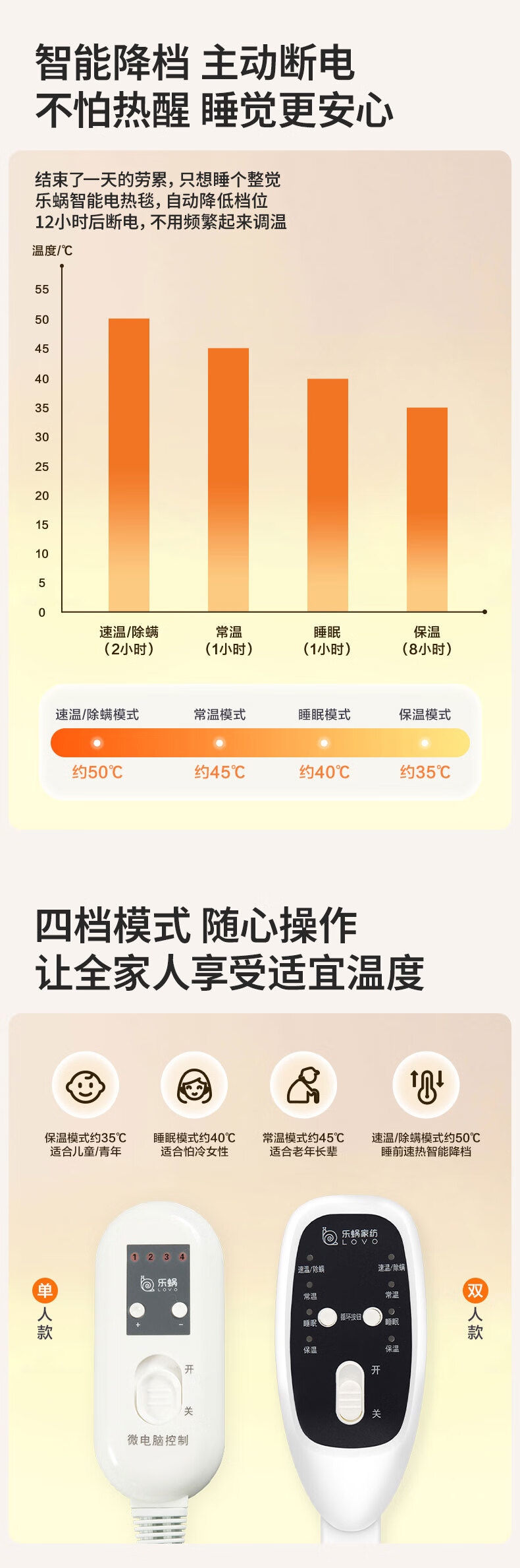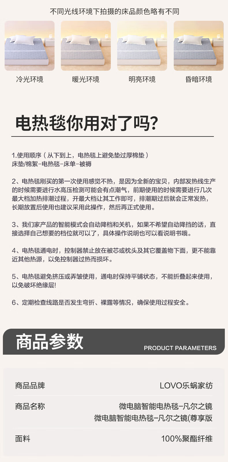 LOVO乐蜗 微电脑智能电热毯-凡尔之镜