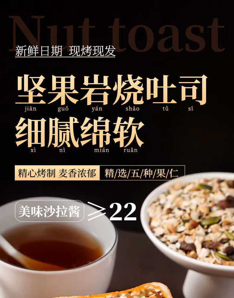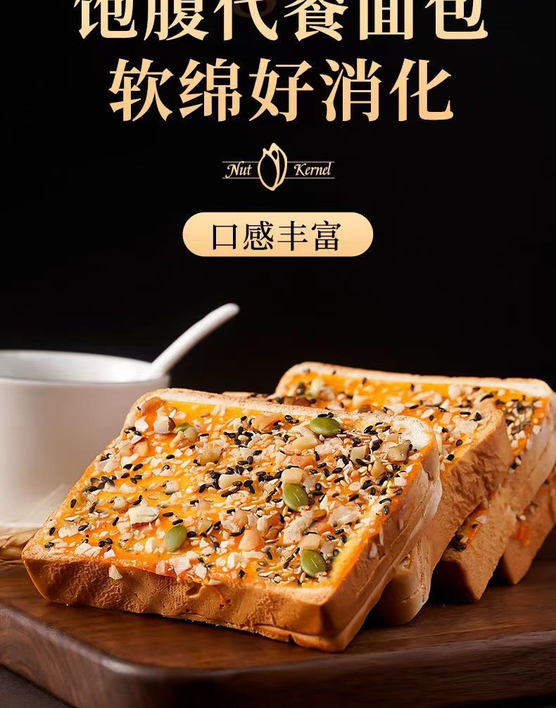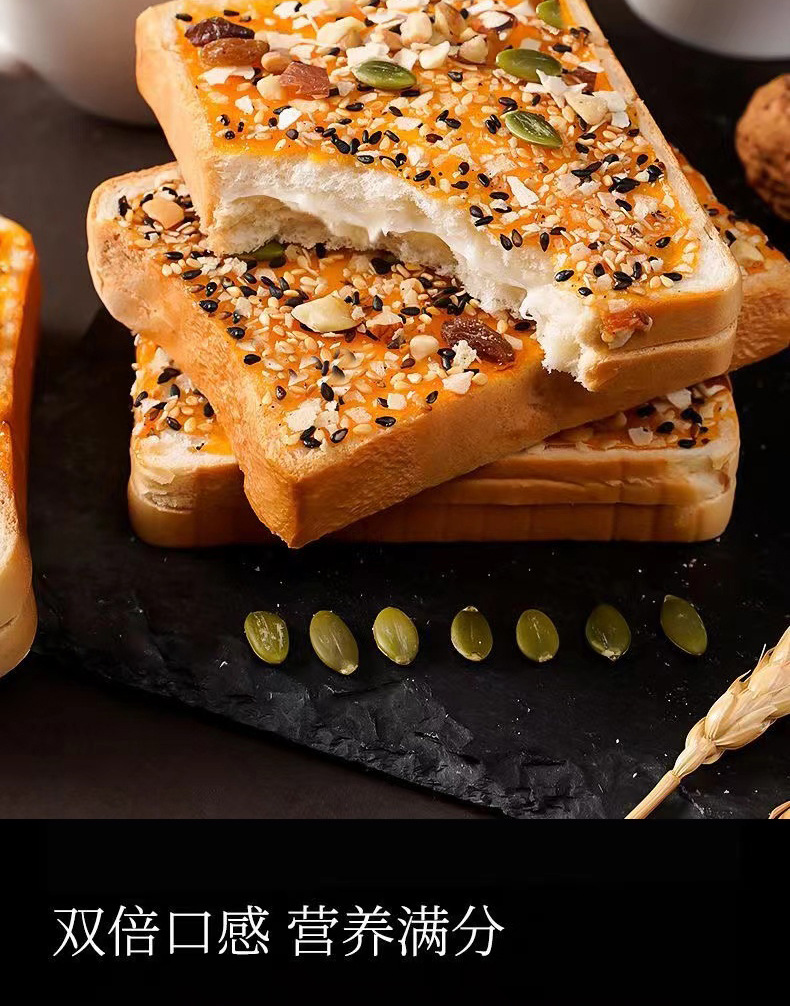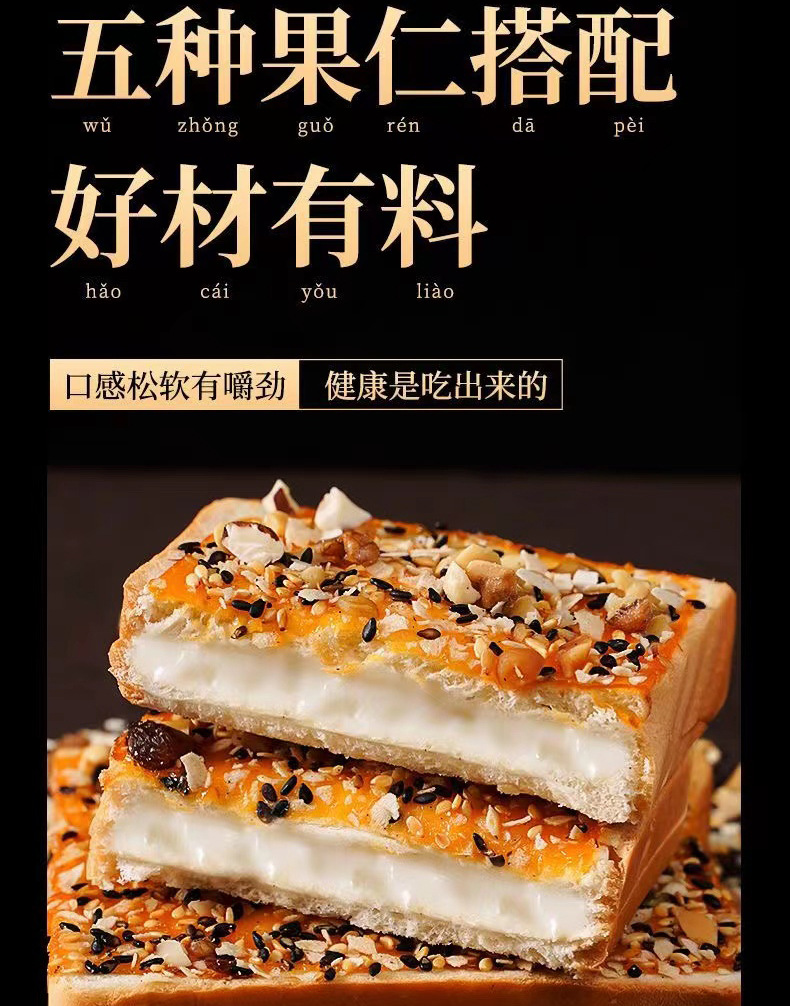 【五种果仁搭配!敲击好吃的坚果岩烧吐司】口感松软,有嚼劲细腻,绵软麦香浓郁,乳酪芝士夹心面包核桃早餐饱腹零食