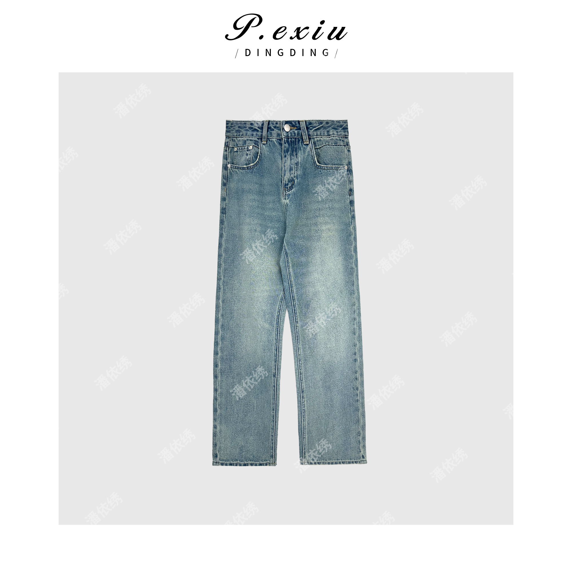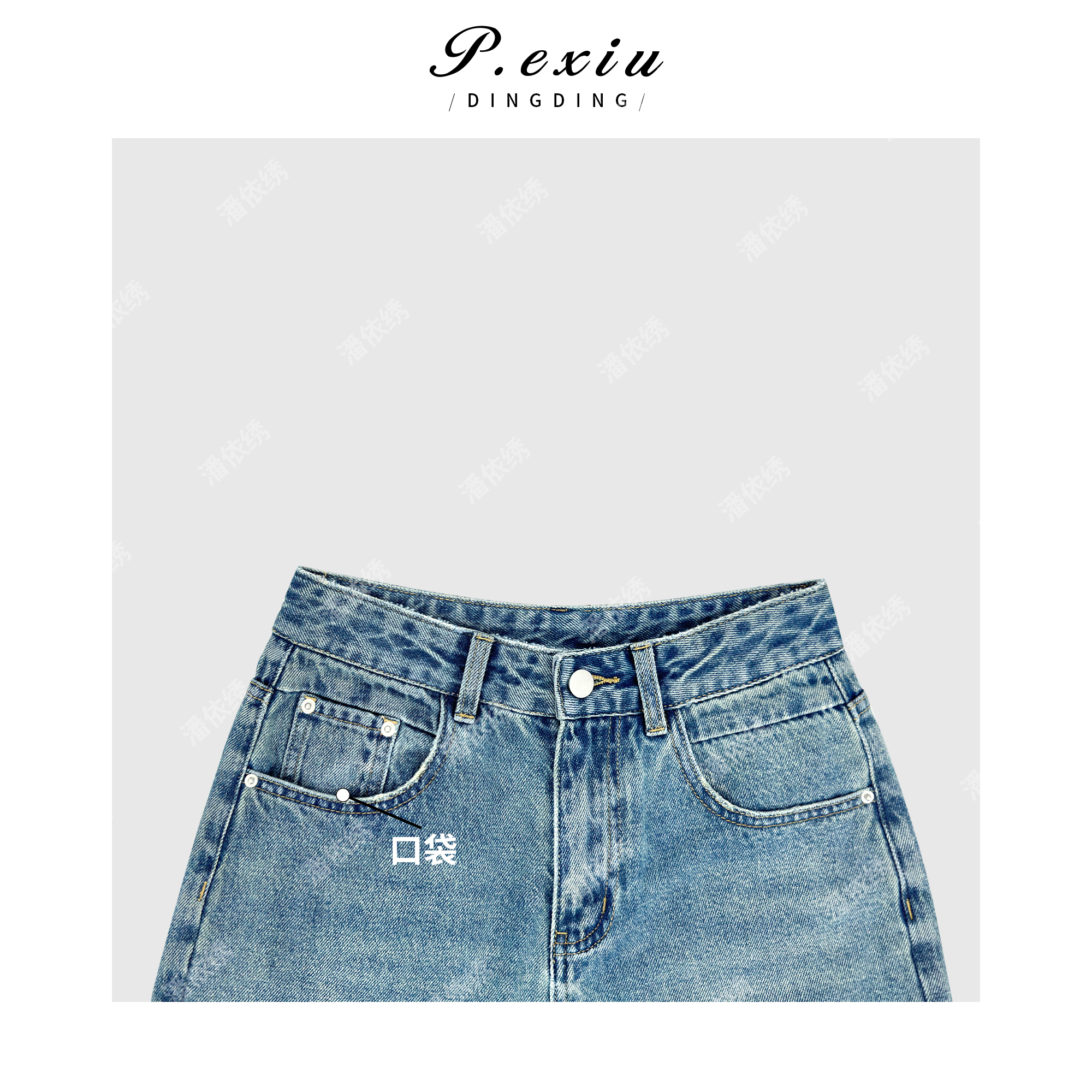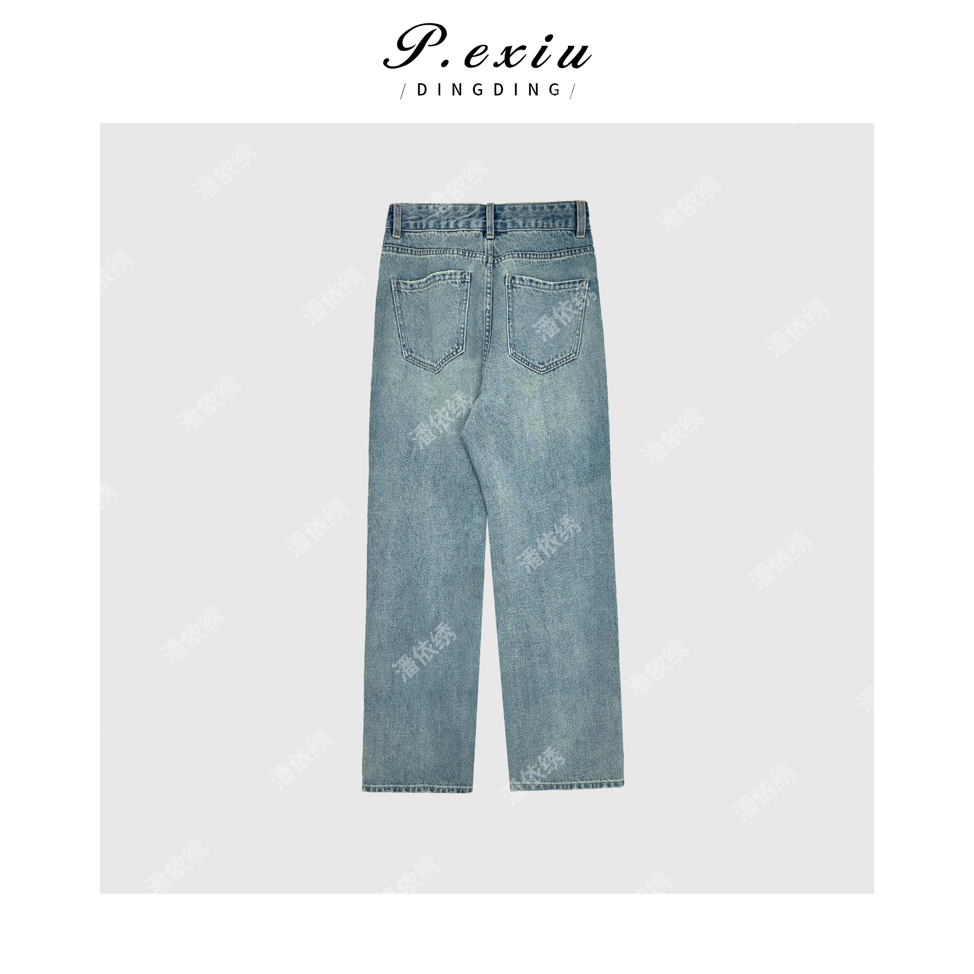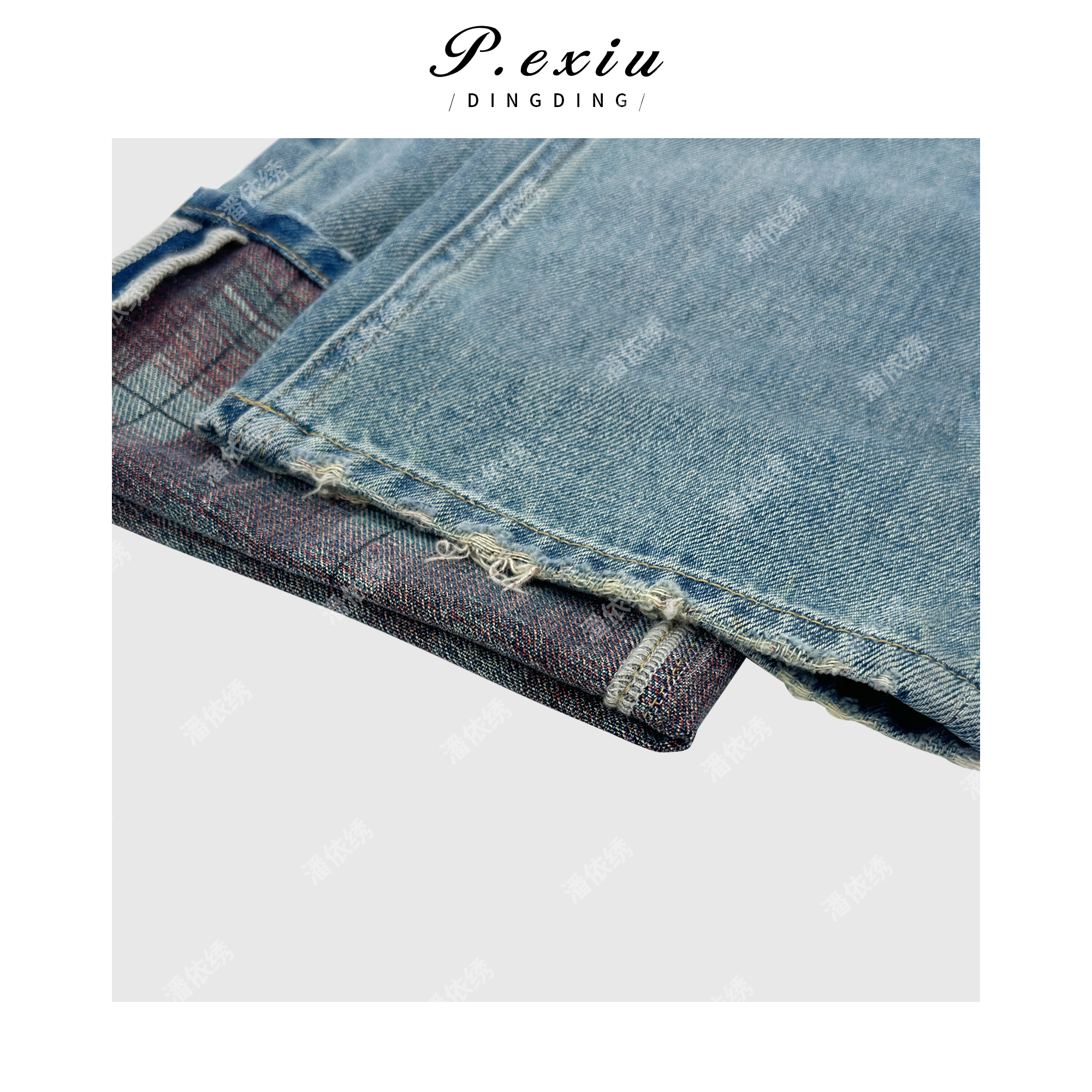 04-3潘依绣丁丁宠粉PanYiXiu/潘依绣【内里红格】重工水洗高阶毛边直筒牛仔裤 D6297