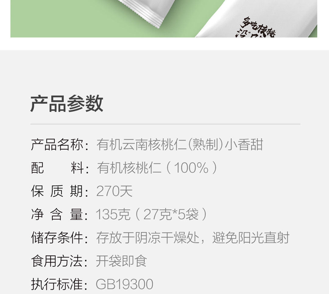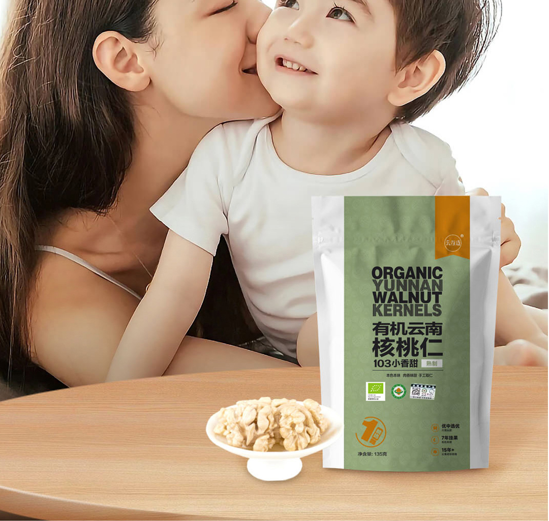 【熟制】云谷造 欧盟中国双有机云南核桃仁(103小香甜) 135g(27g*5袋)*3包 (小袋独立装) 肉香味甜
