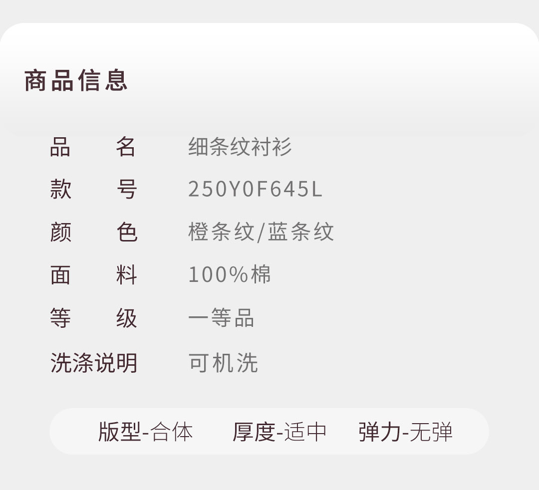 四面弹细条纹衬衫250Y0F645L新疆长绒棉舒适透气[门店专款]