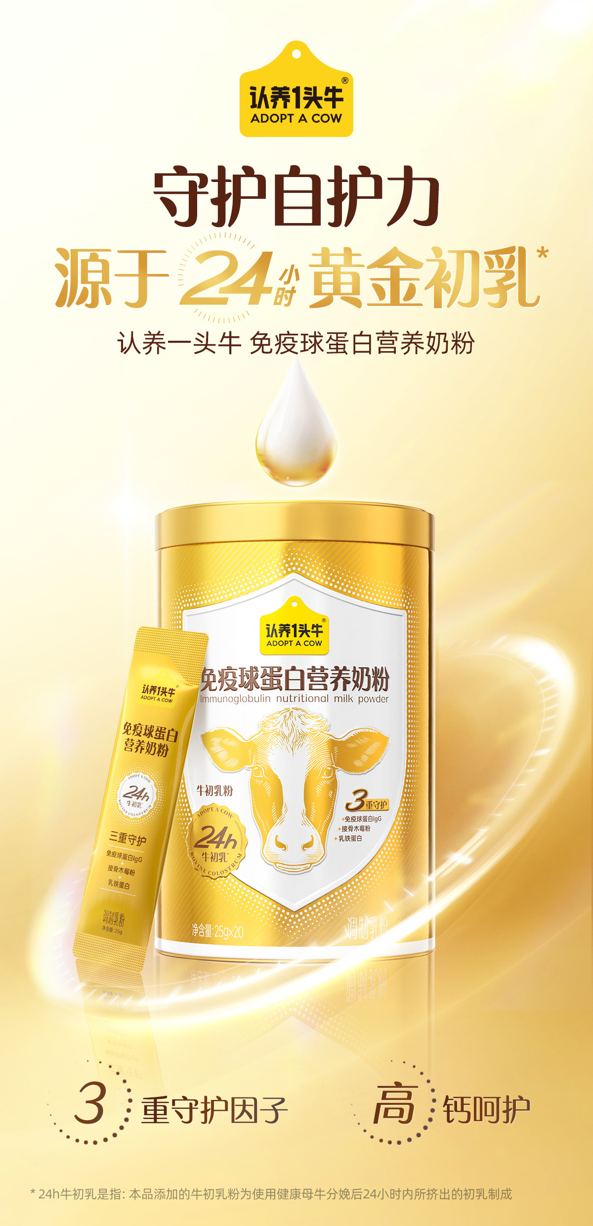 认养一头牛免疫球蛋白营养奶粉成人含乳铁蛋白年货节送礼送长辈500g*规格 (独立包装)