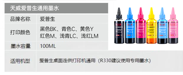 天威适用爱普生通用R330 R230 R270 R290 R1390 R210 L101 672 L360 L805 L405 L485 连供墨水