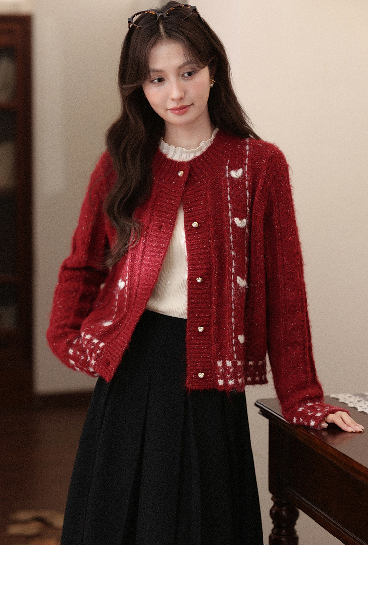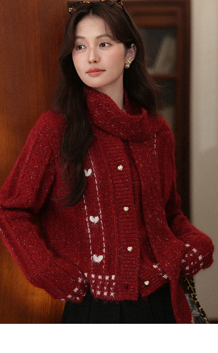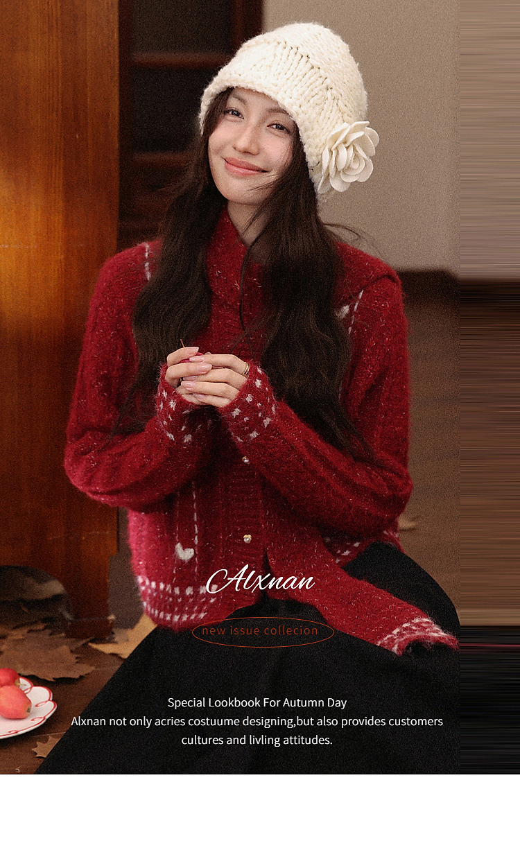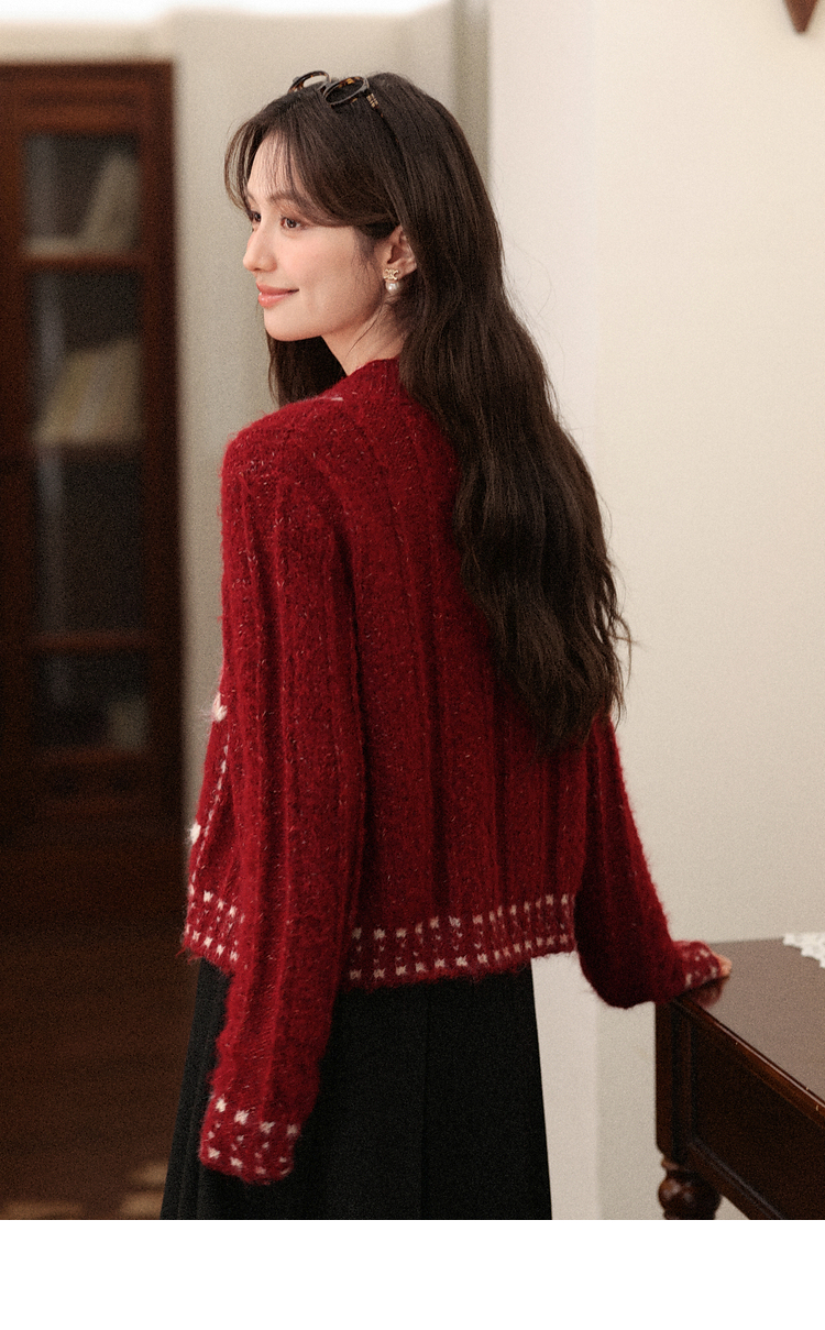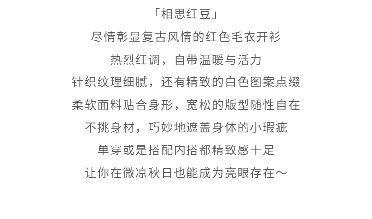 鹿向南「相思红豆」气质复古红色毛衣女秋季时尚宽松显瘦开衫外套