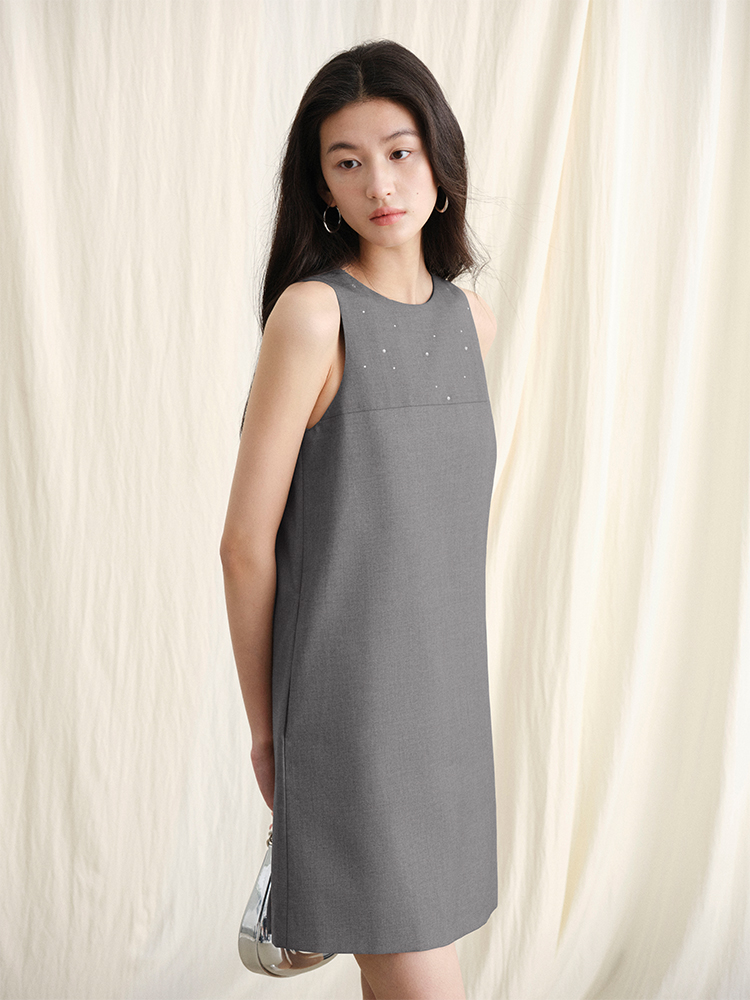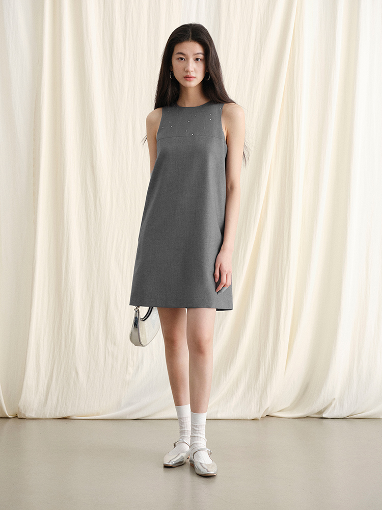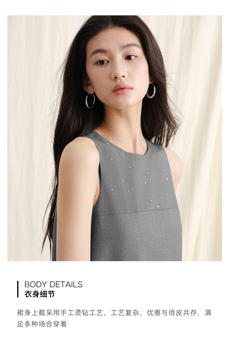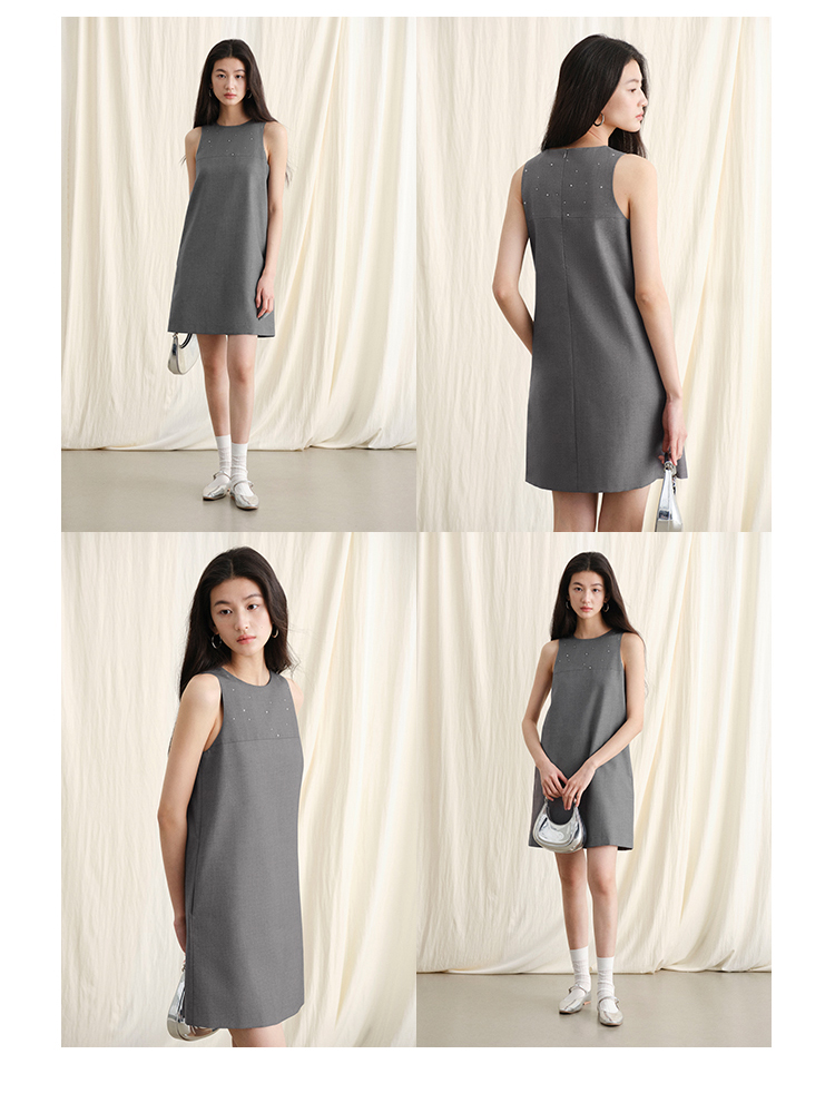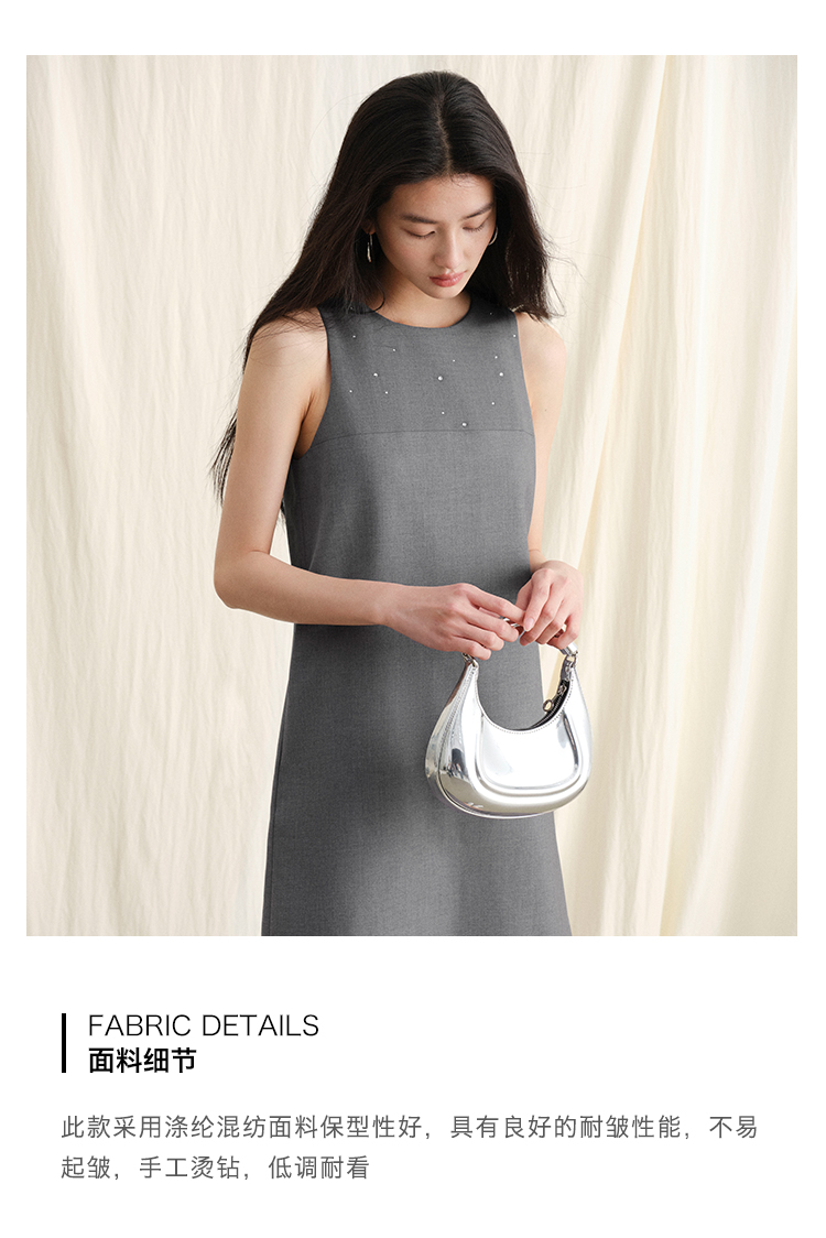 ForPoem 现货 24/SS原创设计手工烫钻削肩无袖简约背心连衣裙