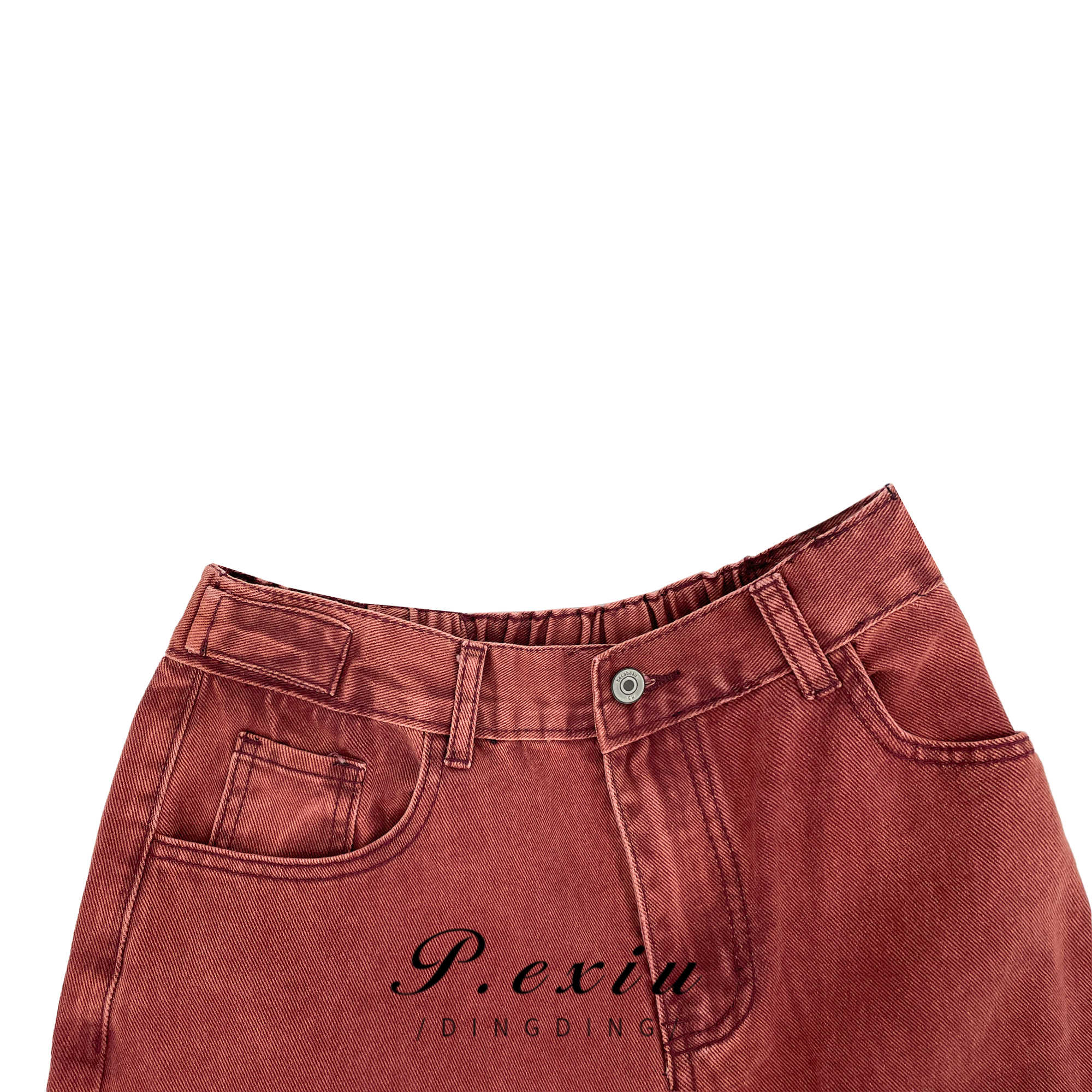 08-2 潘依绣丁丁宠粉美式复古洗水做旧宽松牛仔裤 Z66157