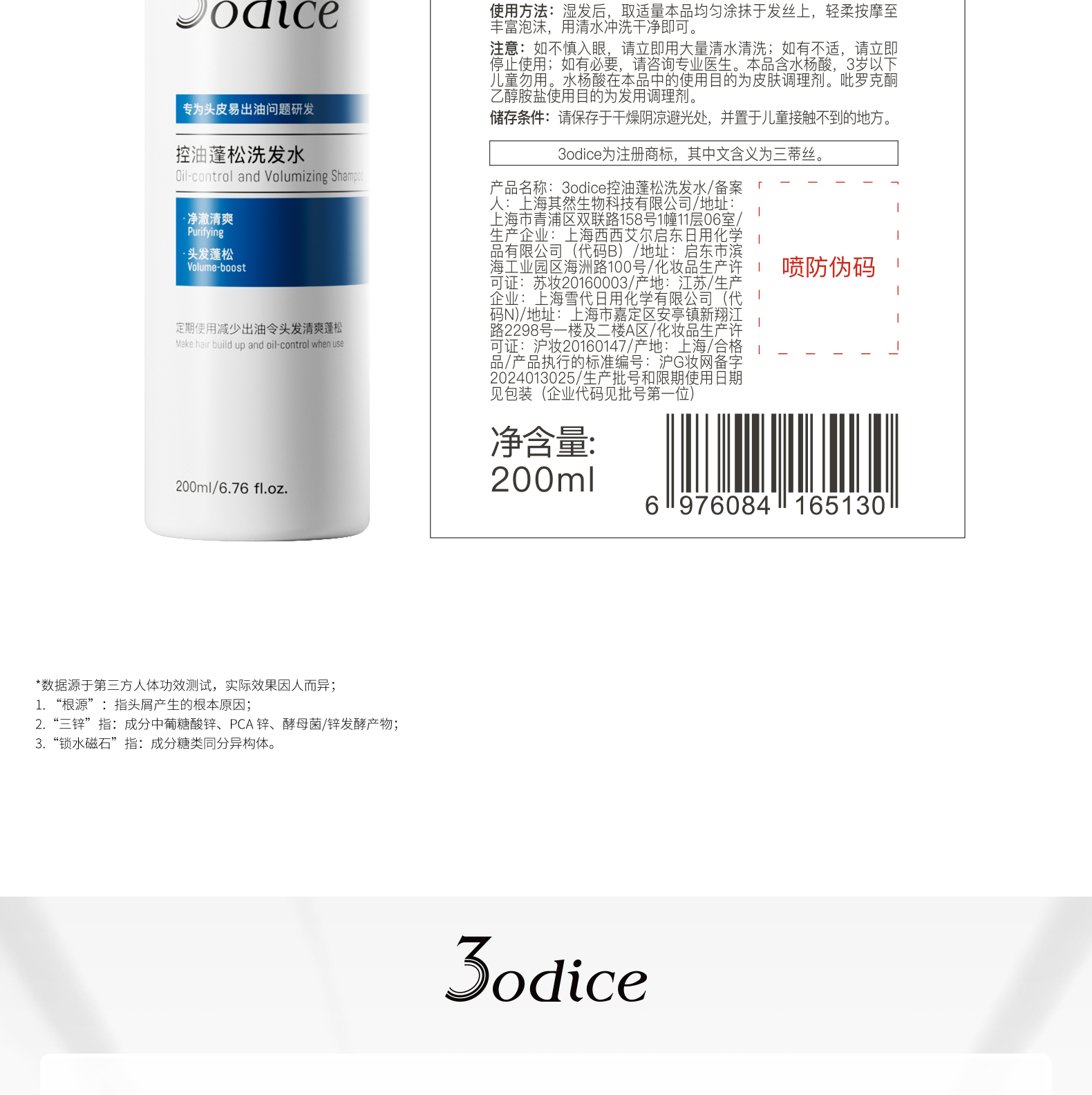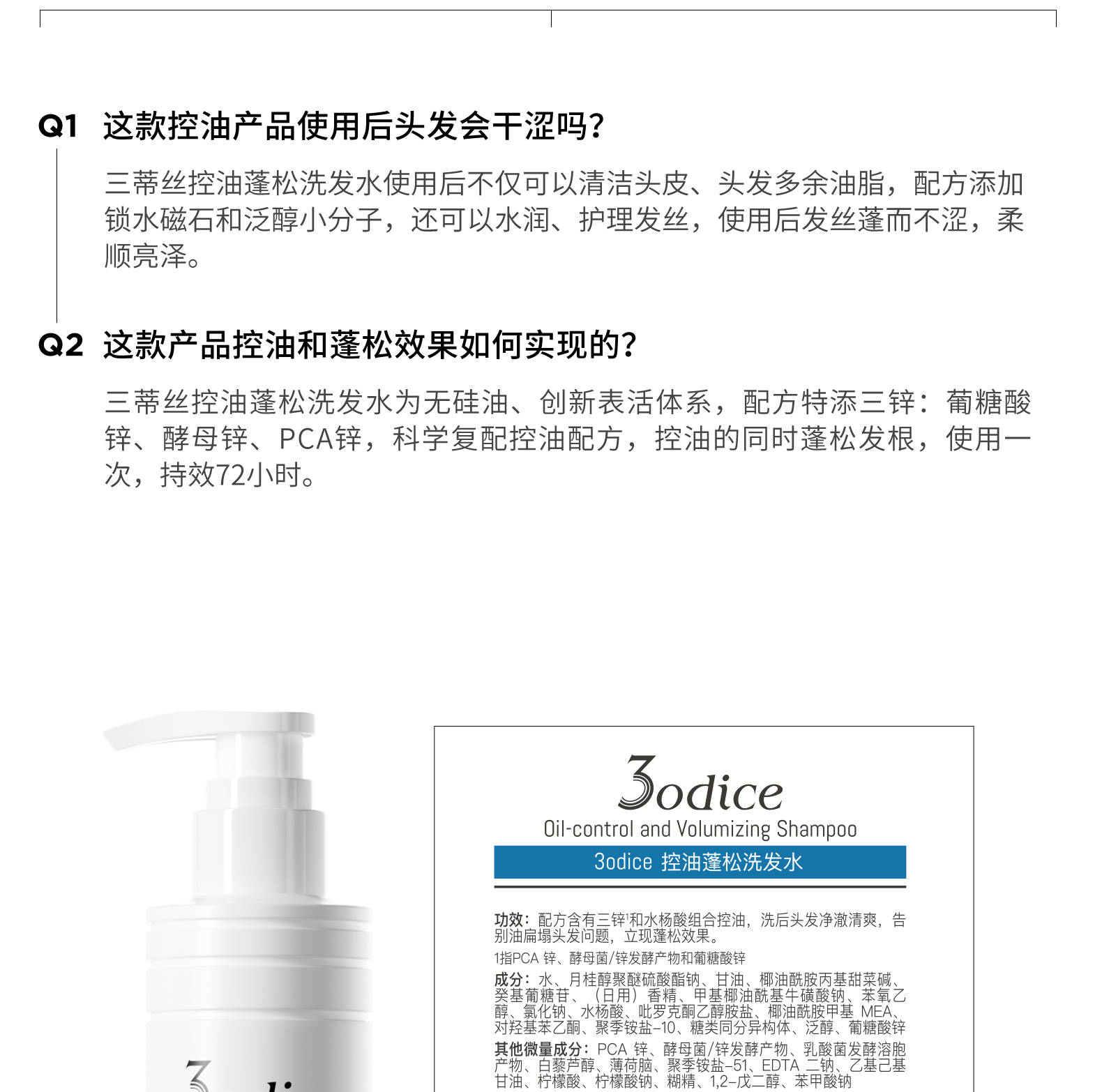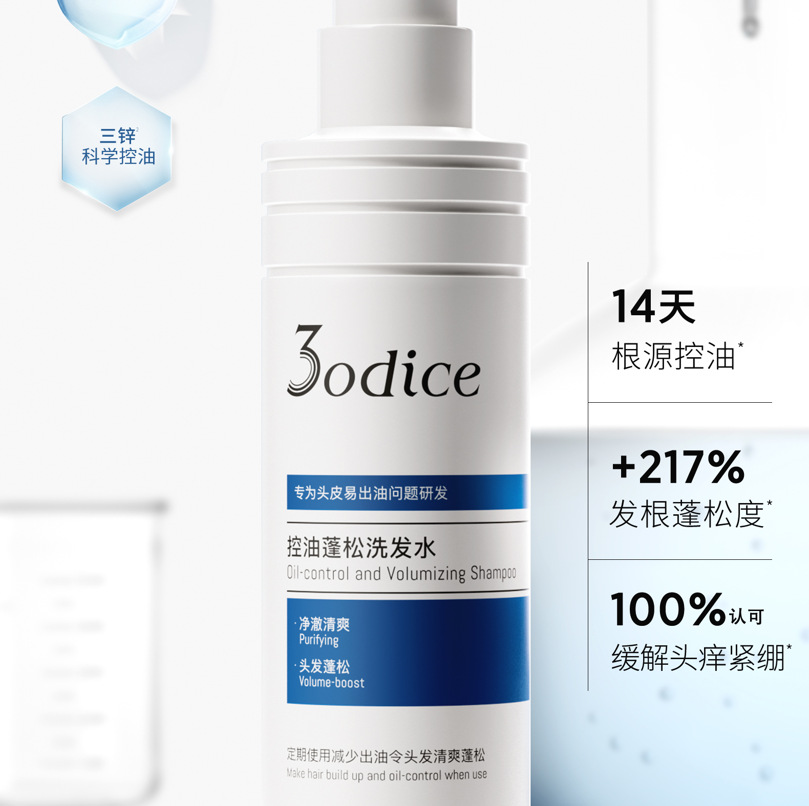 【油扁塌适用】3odice三蒂丝 控油蓬松洗发水 蓝盾洗发水