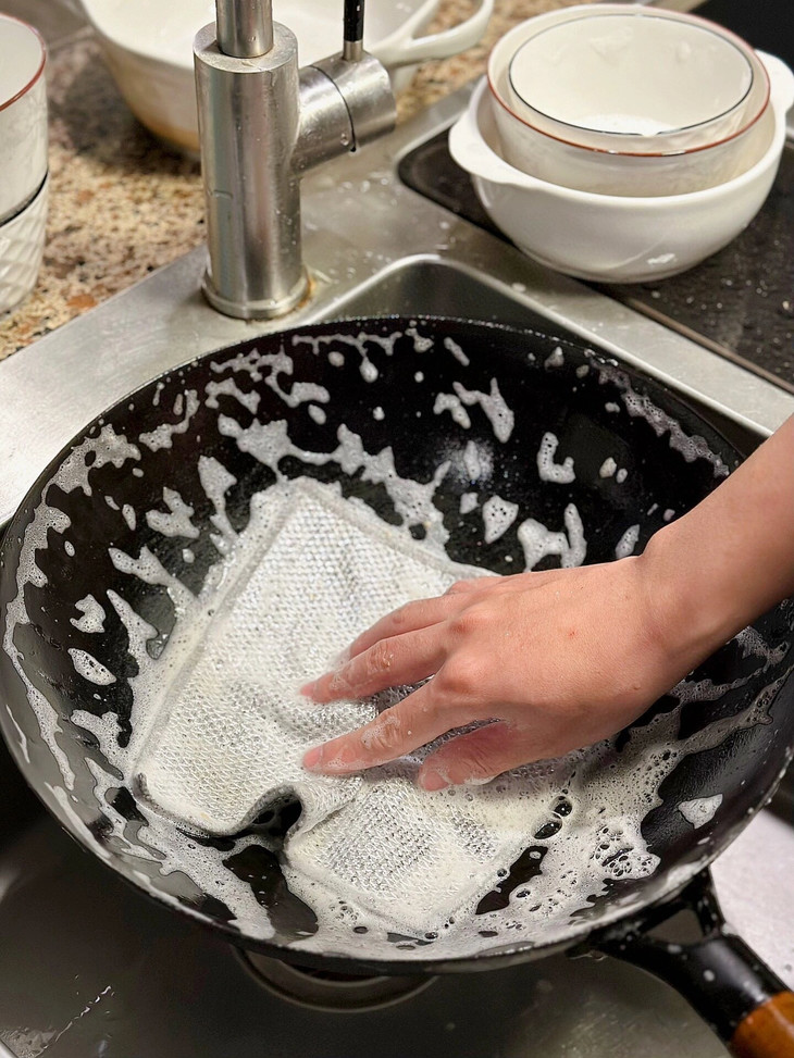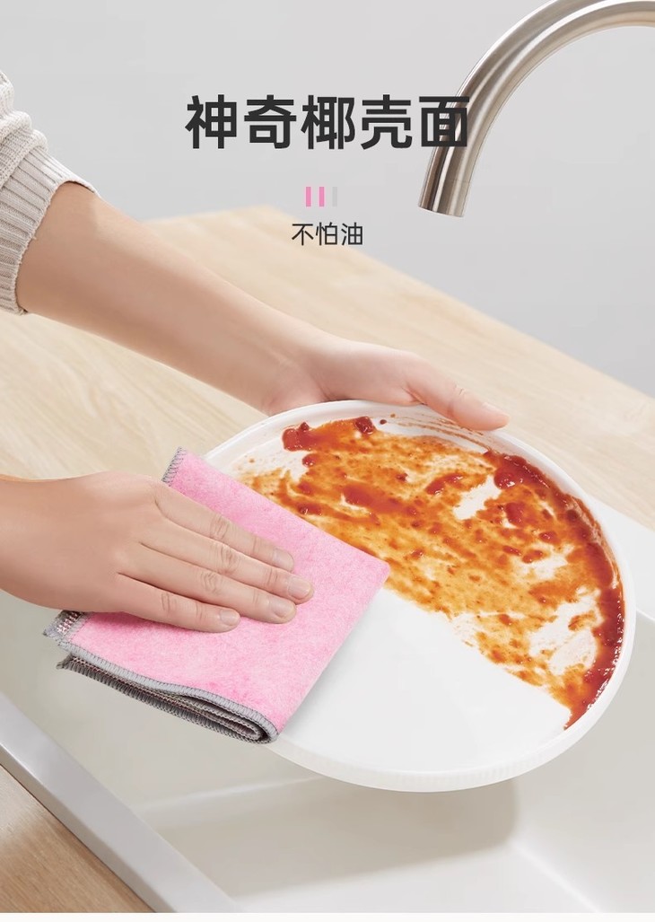 ✅多场景均可使用 不管是光滑餐具 还是污垢聚集的锅 双面双效均可一“布”搞定❗️ 清洁效果快且不伤器物