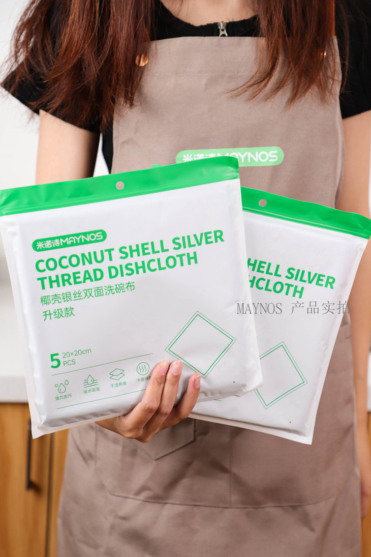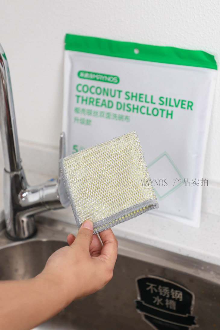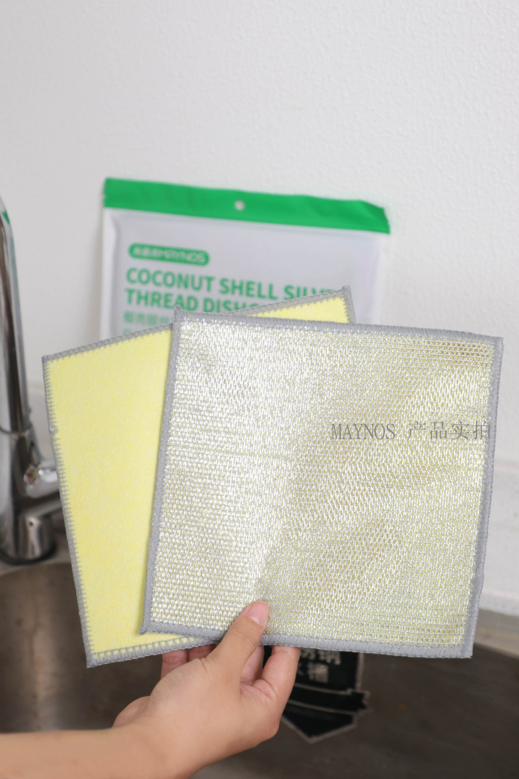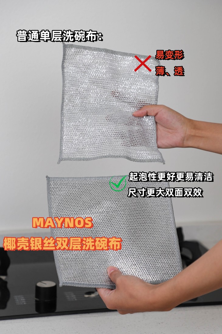 🧼//【MAYNOS椰壳银丝双面洗碗布】第四代银丝抹布!双面双效新升级,起泡效果甩普通银丝抹布几条街❗️ 🔻双面双效,吸水吸油一块搞定 🔻银纤维丝,不伤锅具不伤手