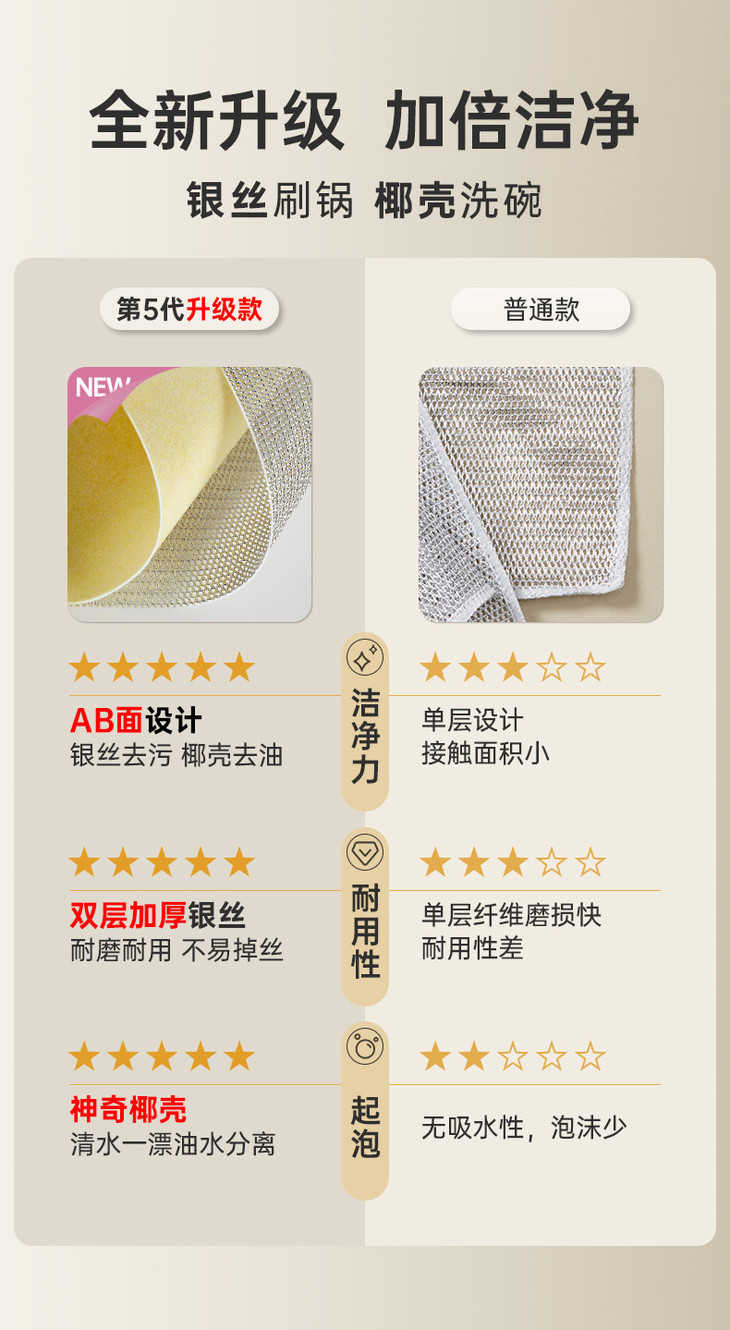 抖音卖爆的黑科技❗️ 随便一搜都是100W的销量 注意⚠️这不是同款! 是升级款❗️加厚不加价‼️ 一面银丝布➕一面椰壳布 吸水吸油一块搞定! 别人家单层:9.9💰4条 开团双面双效:19.9💰15条/29.9💰25条