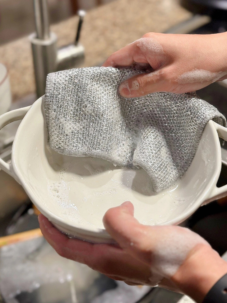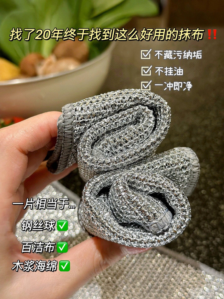 ❗️代替钢丝球!!!!!! 老人家可喜欢用钢丝球了!! 我们这款[银丝双面洗碗布]代替钢丝球不伤锅 家里的锅再也不会花了 还能代替抹布强效吸水高度清洁 果断给老妈下单!! 花一点小钱 就让家人孩子的健康得到保护挺值的
