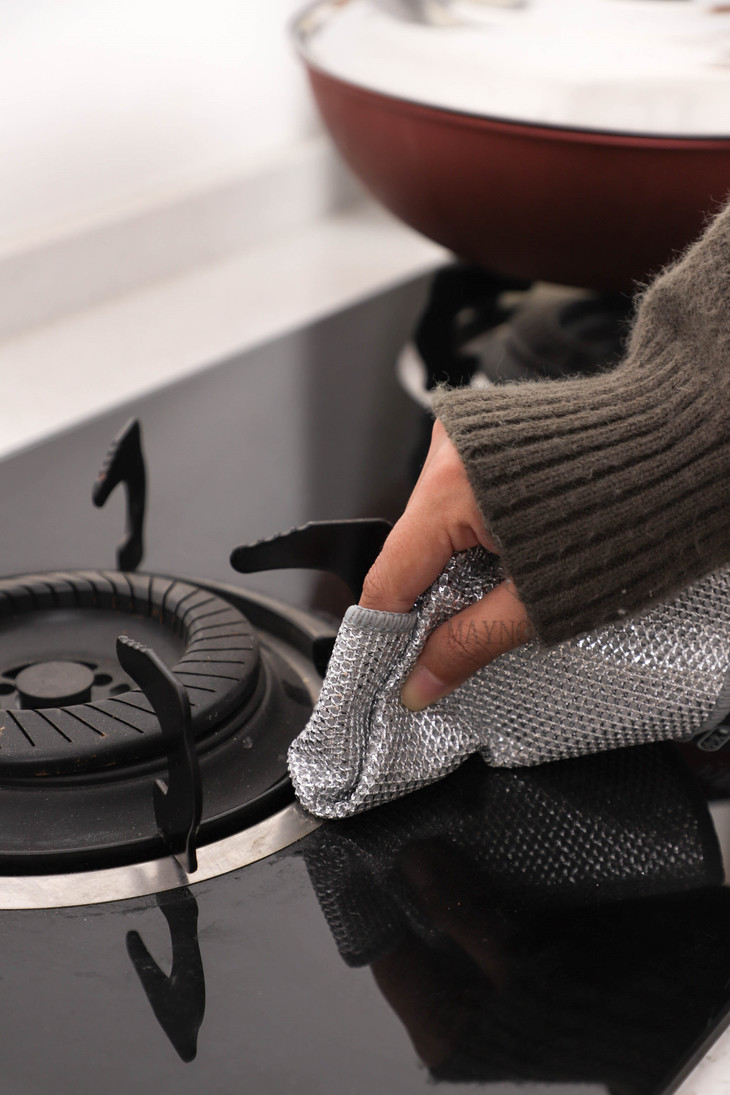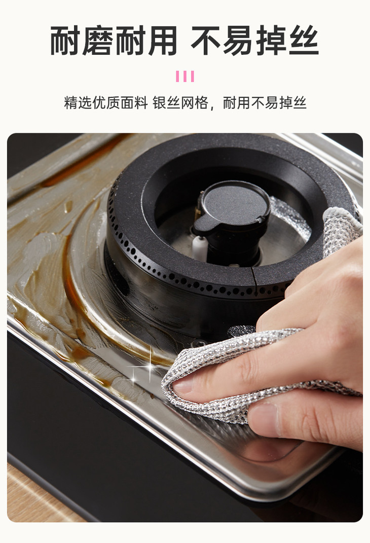 厨房清洁是全家最难的地方 为了针对厨房灶台的钢面和不锈钢等材质 🔻参考了钢丝球的质感 🔻舍弃了钢丝球的硬度 🔻改成了丝网设计的金属丝抹布 摩擦力强✅又不伤锅,不刮手 还不会藏污纳垢 厨房灶台洗碗池都可以擦