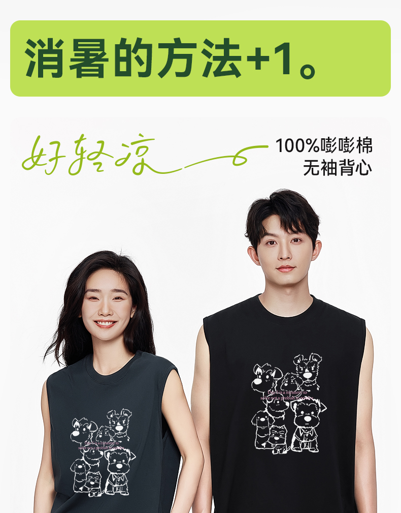 「棉的美学」纯棉痞帅中性坎肩背心男款小狗印花宽松百搭无袖T恤